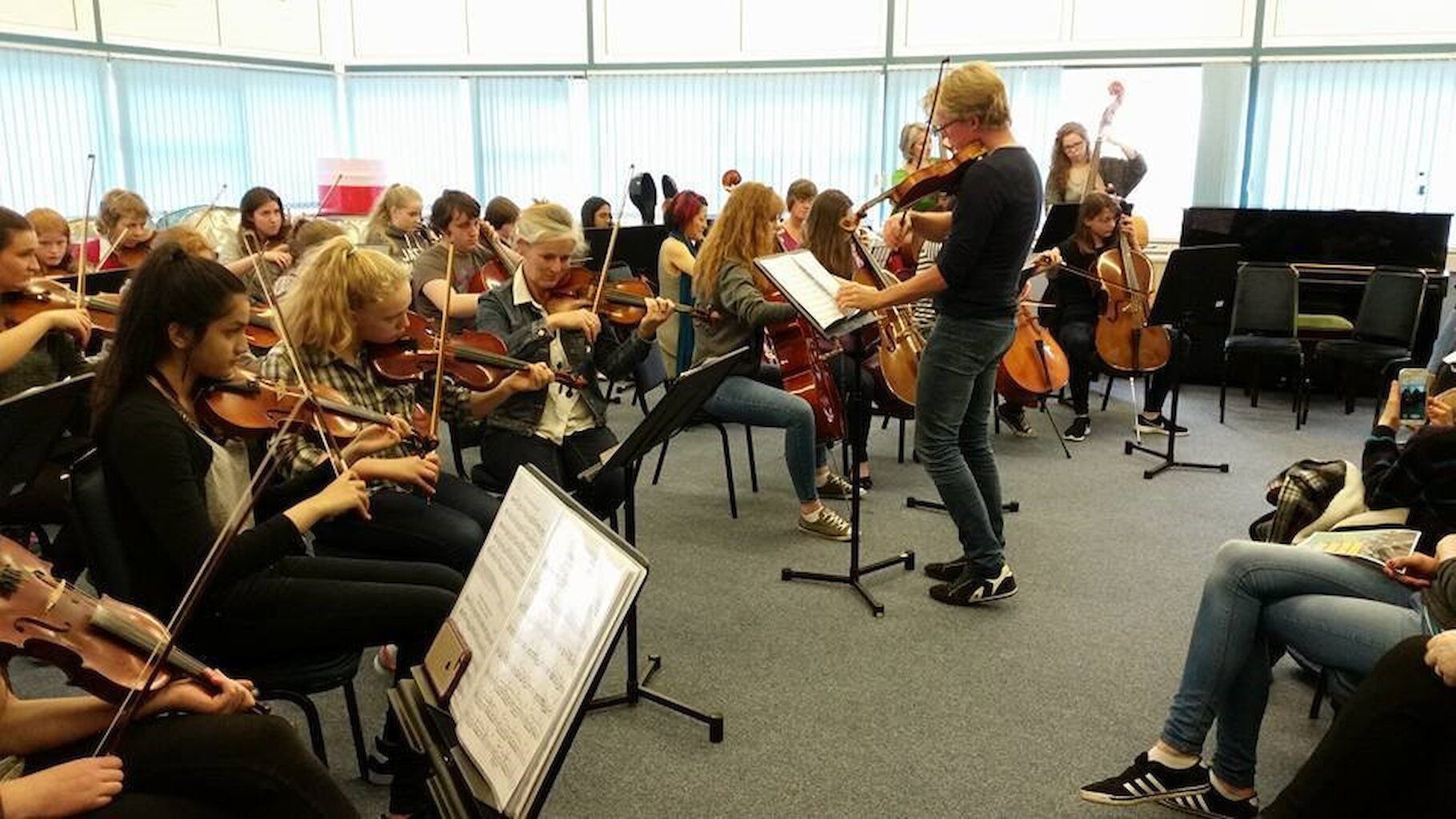 The second group travelled north to Brae, where they worked with string pupils at the Brae High School, and created a joint performance for the rest of the secondary pupils. The group then visited Northaven Care Centre for an informal performance and discussion with the residents.