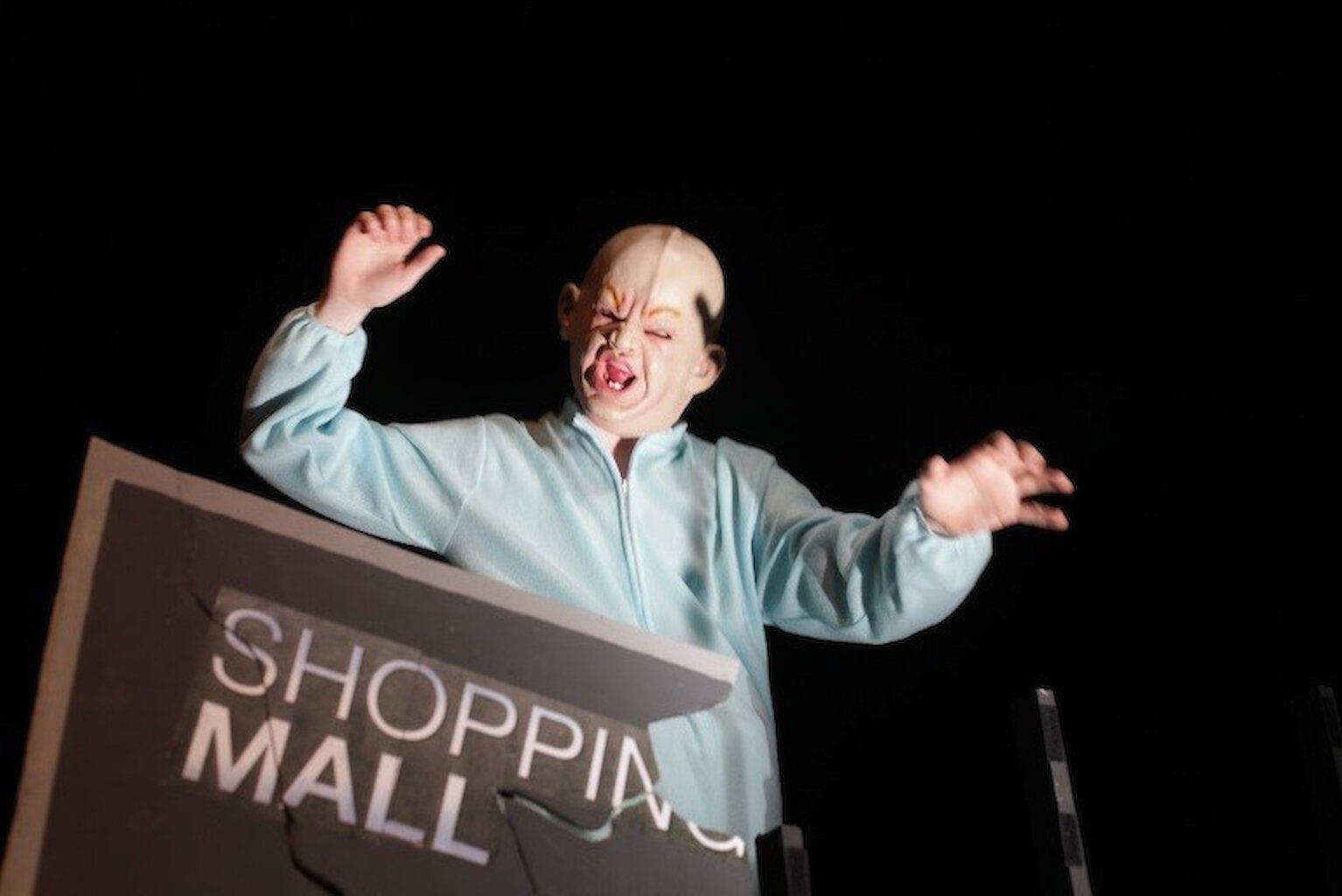 Shetland Youth Theatre’s 2016 production was ‘Gargantua’, written by Carl Grosse, was presented as part of ‘Connections’, Britain’s largest youth theatre festival. The play is a homage to 1950’s B Movies. What it lacks in subtlety, it makes up for in noise! The world trembles with fear as Hugh Mungus, a 220 foot tall baby, wreaks havoc in revenge for the cruelty inflicted by the sinister Janus Technologies.