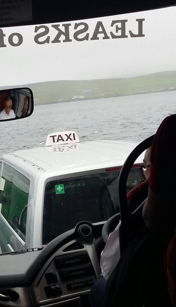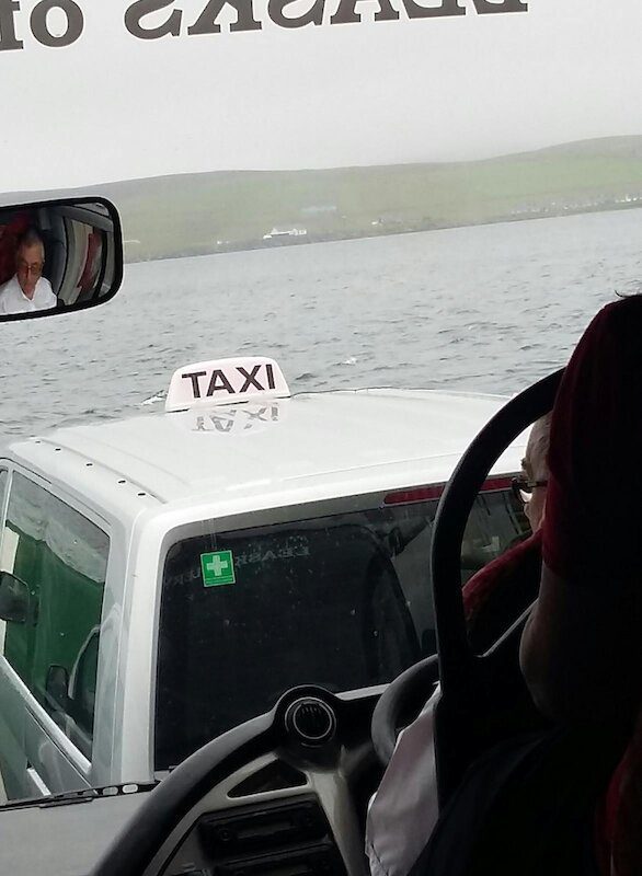 Well, I walked top speed doon the brae fae the toon hall, having left YH later than intended! Buoyed by coffee n whisky n a good measure o’ hope we’re off on oor Friday fiddle adventure to Bressay {8.23} Plenty interesting to see as we waited for the ferry, ‘specially the Norwegian tall ship which cane in to dock as we were waiting for the bus to board for Bressay.