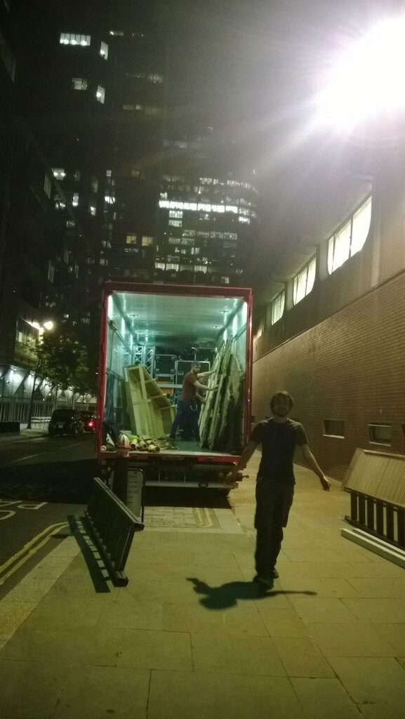 We wake up, not outside our venue but in a bus park near the O2 Arena. The Barbican centre where tonight’s show is can’t provide parking space for a bus so at 8am we’re picked up and driven across rush hour London to our loadin. The truck driver Kevin is furious because a rival company has left a trailer in his space which meant that he has had to park in the road for 6 hours and thus had to sit in the driver’s seat to fend off traffic wardens rather than get some sleep.