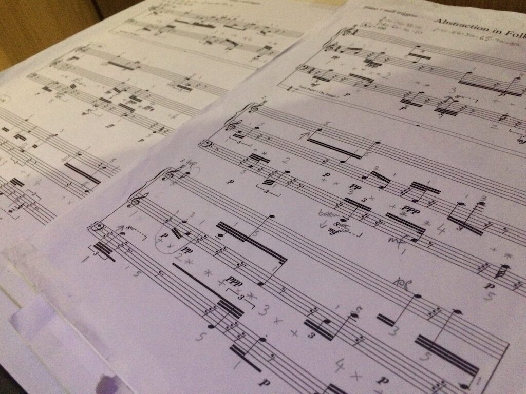 For the second of Øyvind’s pieces, Neil is required to play along with a pre-recorded cassette of himself playing two complex parts, dubbed together using two simultaneous tape machines. The flutter and saturation inherent in the process are an integral part of the timbre of the piece. The fast runs are challenging to execute, but when it all syncs up, it’s impressive.