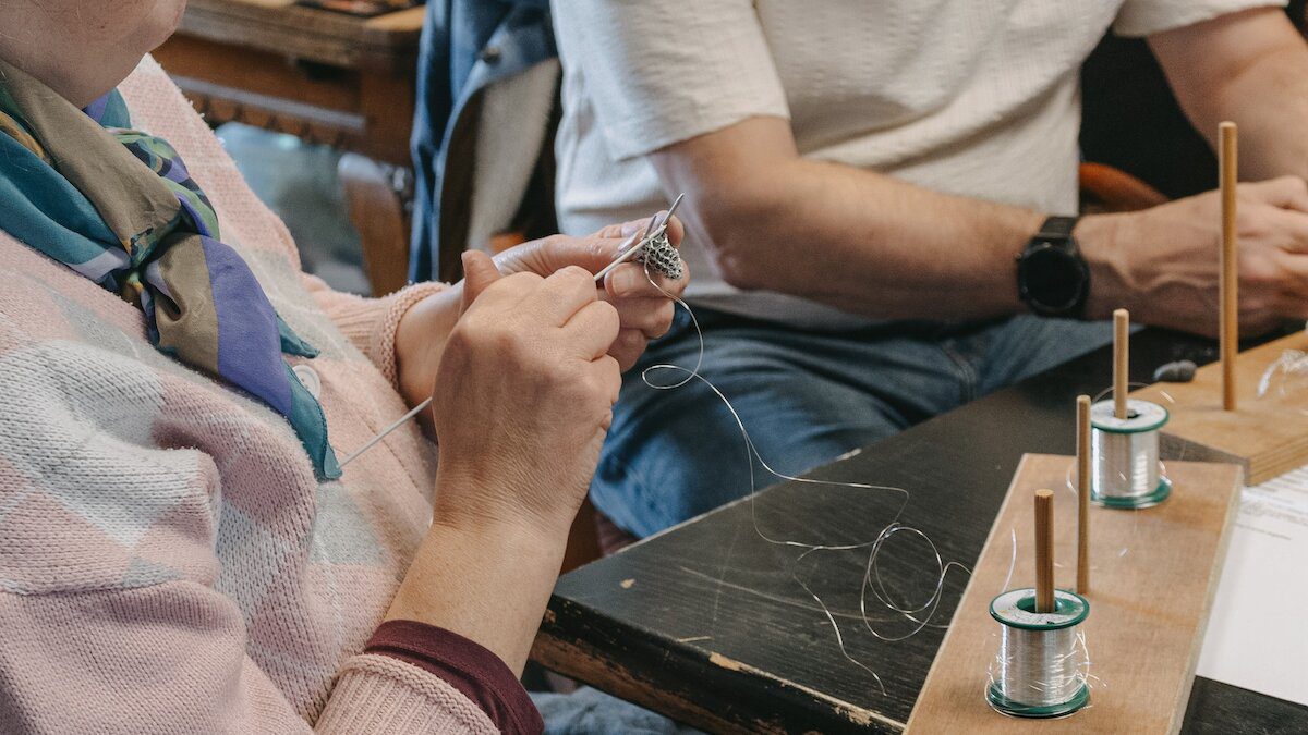 The hardened bodies were then covered by knitting around them in the round using 2 strands of 0.2mm silver wire held together. This is very challenging to achieve and I was delighted that some workers adapted this to their own favoured method by using flat knitting and crochet.