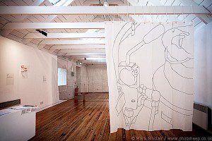Installed in all Bonhoga exhibition spaces will be textiles by selected international artists and jewellers working in textile materials, mainly from Finland, Norway, Iceland, the Netherlands and Britain. The extremes of scale in the exhibits, and their placement in the gallery spaces, will focus the viewer on the vast potential of textiles: the way textile techniques and materials can be used to express ideas beyond the usual scope of functional textiles in loom width, or garment structure.