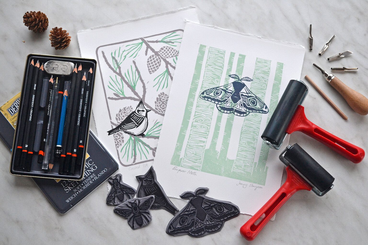 We are delighted to showcase her new collection of original linocut prints at Bonhoga featuring popular Scottish birds, and to compliment this collection Jenny has produced a range of digitally printed greetings cards, which are ‘flying’ out the door!