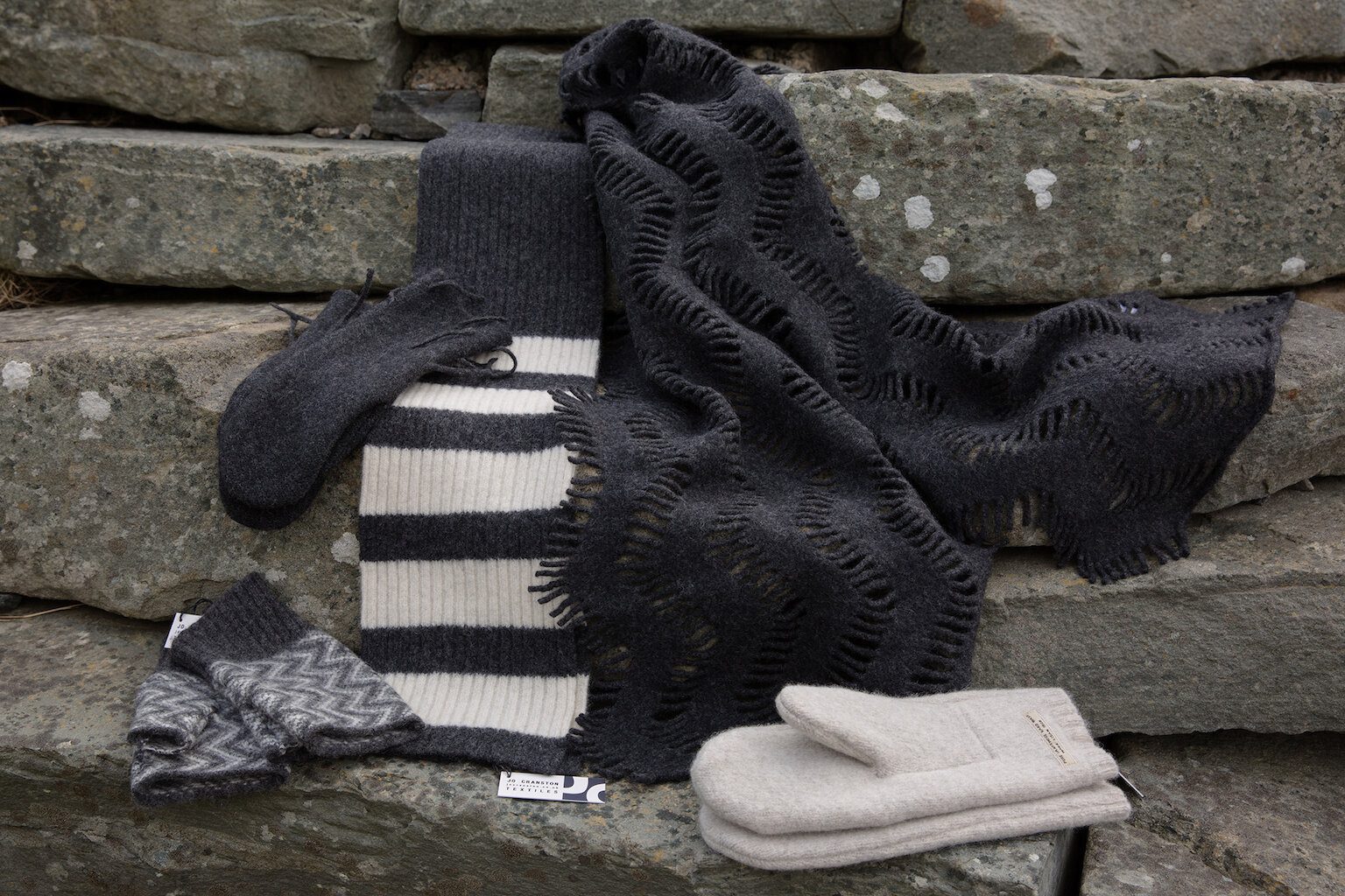 Jo Cranston’s beautiful contemporary textiles combine innovative design and traditional British craftsmanship. Her range of products includes scarves, wraps, mittens and fingerless gloves for men and women, all made using the best quality Merino lambswool sourced from both Scottish and English mills.