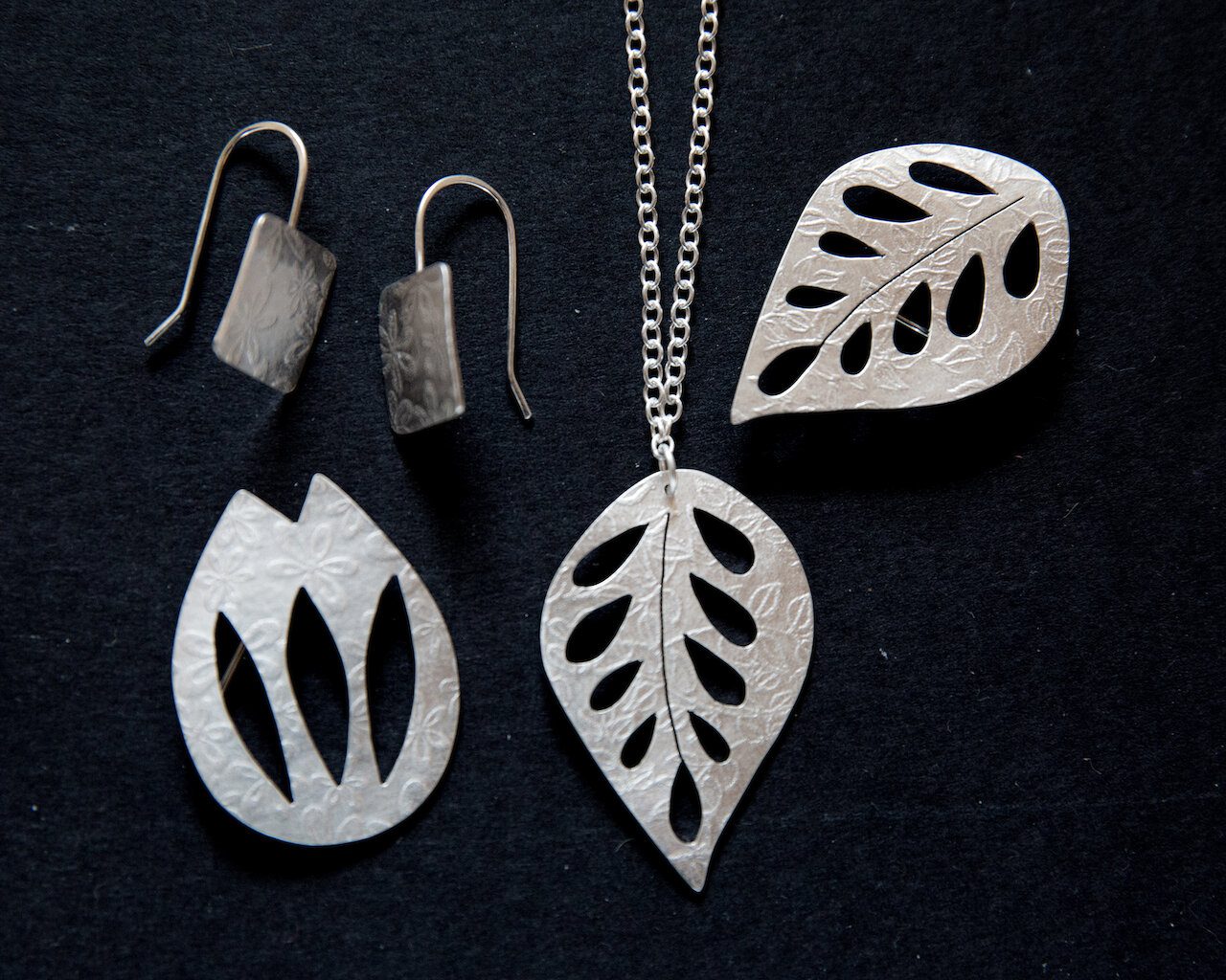 Every piece is handcrafted by Joanne using sterling and fine silver, 24k gold and jewel-coloured wool. She loves to combine traditional techniques with modern; the unique textures on her silver are created by both computer aided design software and traditional jewellery hammers.