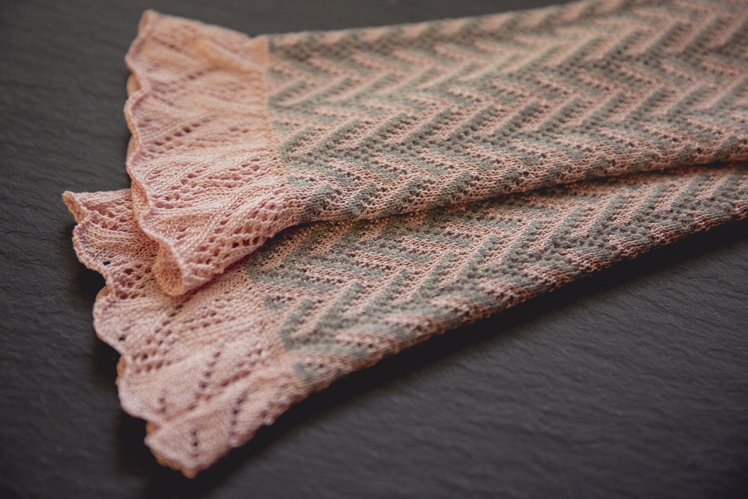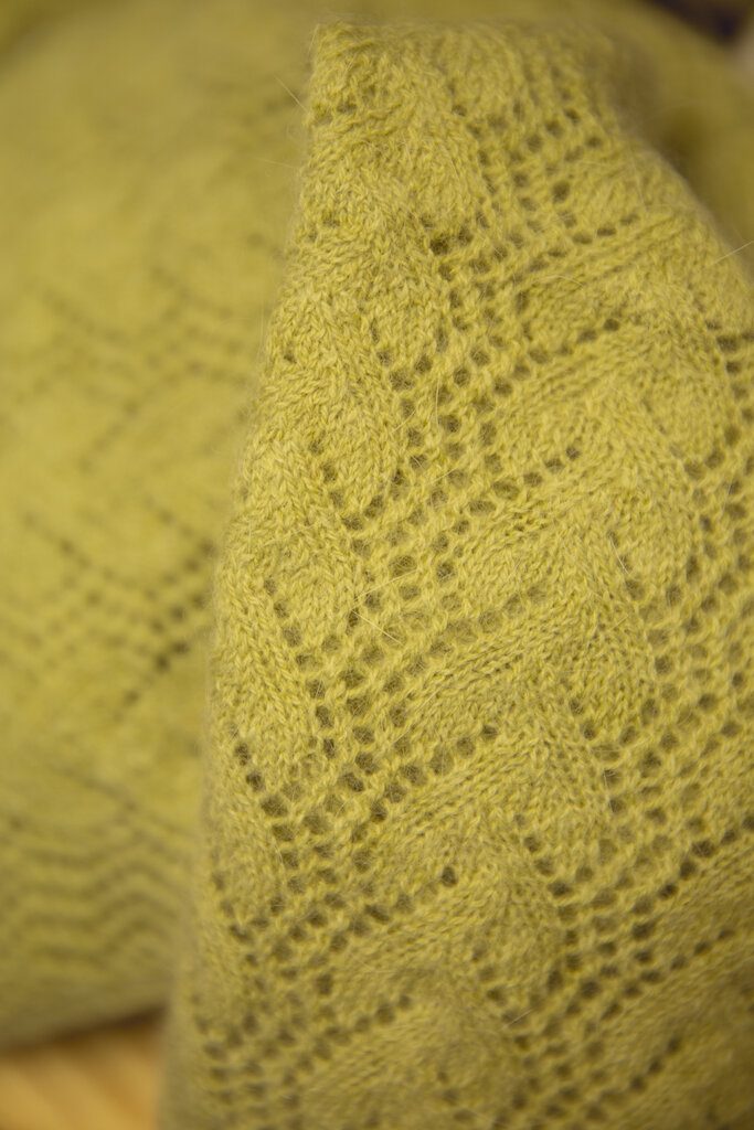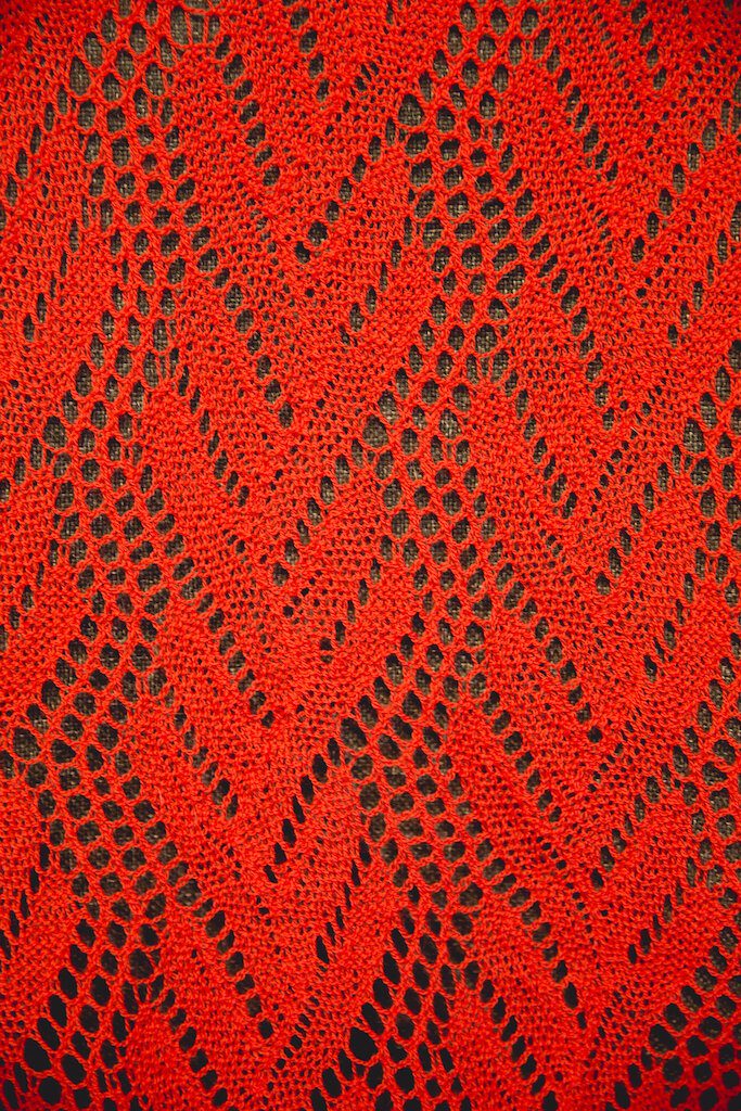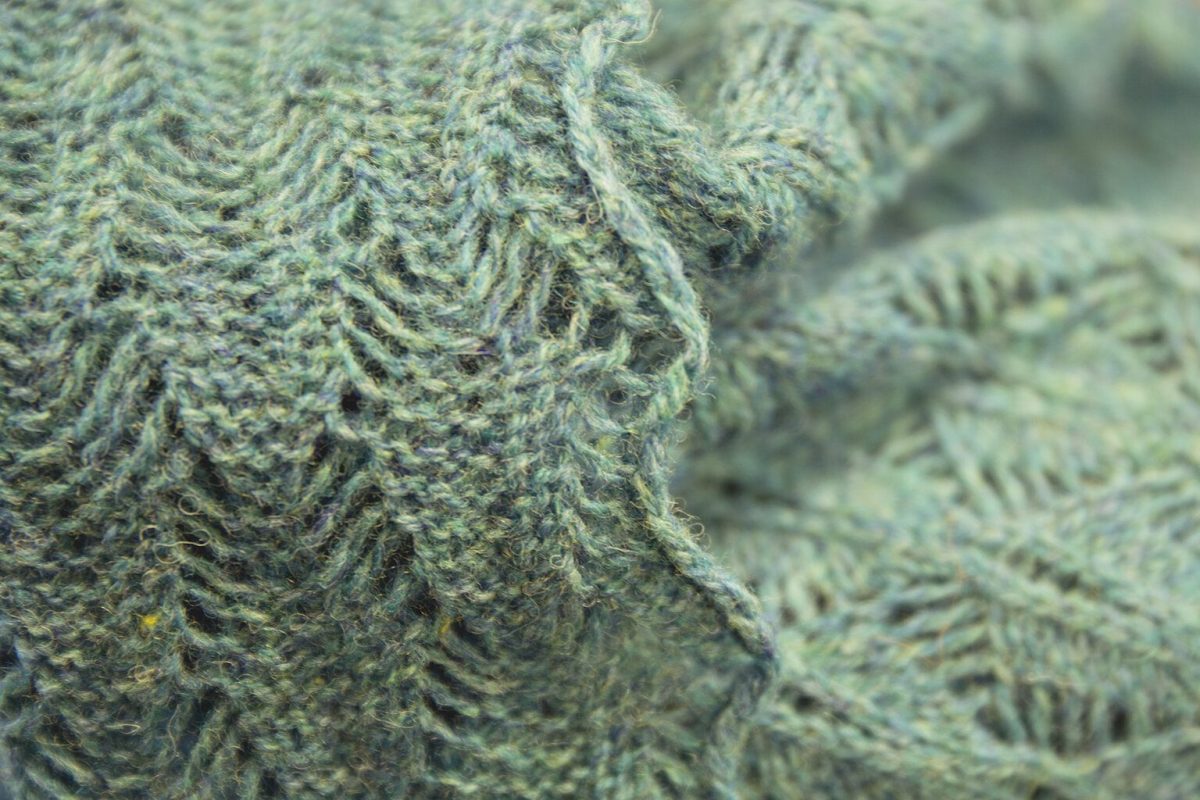 Designer Hannah Nelson began her business over two years ago with a collection known as ‘Sense of Plaice’, which was inspired by the physical form of the plaice fish, and this is reflected in the design of the pieces. The collection comprises scarves, shawls and wraps all made with 100% Shetland wool. The crinkled effect of the pieces is a natural result of texturing by the pattern itself, whilst the traditional stretching method done on wooden frames open up the pattern to show a more lace appearance. The design brings together traditions of fishing and knitting, and all made with the wool of native sheep.
