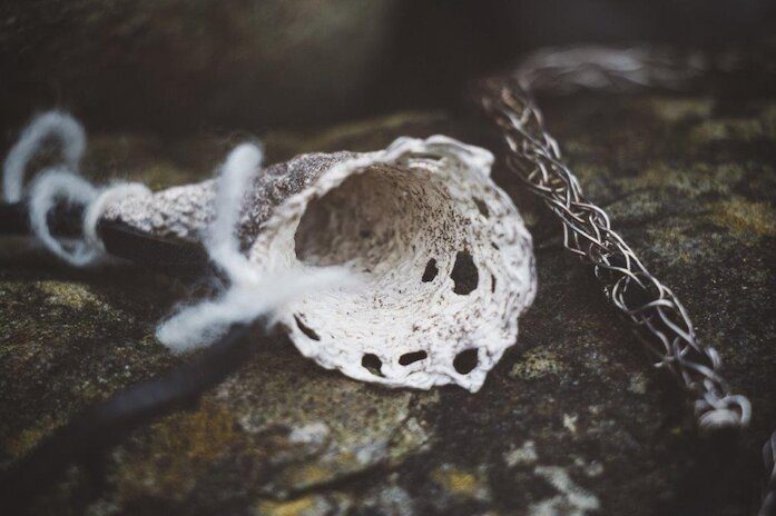 In my practice I find myself more and more thinking about jewellery design and knitting design in tandem. I love illustrating stories from Shetland’s environment and history, creating knitting designs and jewellery collections inspired by the same Shetland inspiration. You can see elements of that in this exhibition but I expect future exhibitions to feature more explicitly linked products.