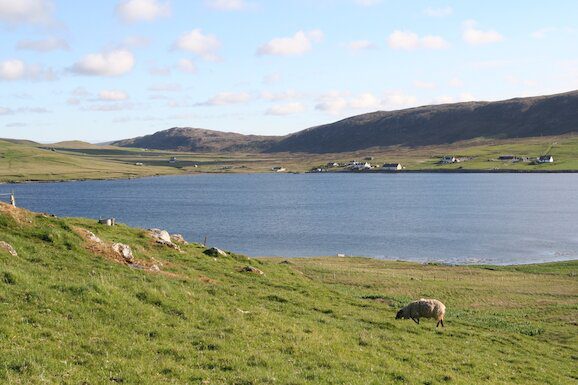 My name is Sharon McGeady and I live and work in North Roe, at the northerly tip of Shetland mainland. Our simple way of living is an ongoing rhythm of daily tasks that have been undertaken for centuries, lighting the home fire, feeding animals, baking bannocks, making soup, salting fish. These daily meditations, the seasons and weather are the framework of life. Lambing, sowing kail, casting peats, planting tatties, making hay are the verses in the song we sing each year, accompanied by the birdsong of shalders and laverooks.