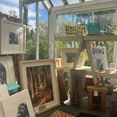 On my way over to Dunbar, having a little time before my next meeting, I squeezed in a visit to the Green House Gallery, a small gallery/shop with a tearoom next door tucked away in a beautiful outdoor garden centre. It was a quaint and unexpected place for a gallery/art shop but complemented the busy wee cafe next door.