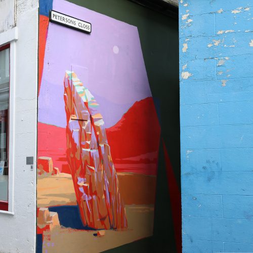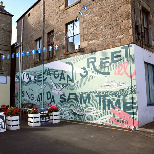 After an open call and selection process the four commissions were awarded to artists Kenny Hunter, David Lemm, Joseph Ingleby and design collective Civic Soup. Through additional support from the Scottish Government’s Town Centre Fund two new murals were commissioned for the town centre of Lerwick. Four mural designs were created and a public vote determined the winning two. These were created by Cobolt Collective and Gavin Renshaw in August 2021. The map and guide has been created by artist/designer Chloe Keppie.