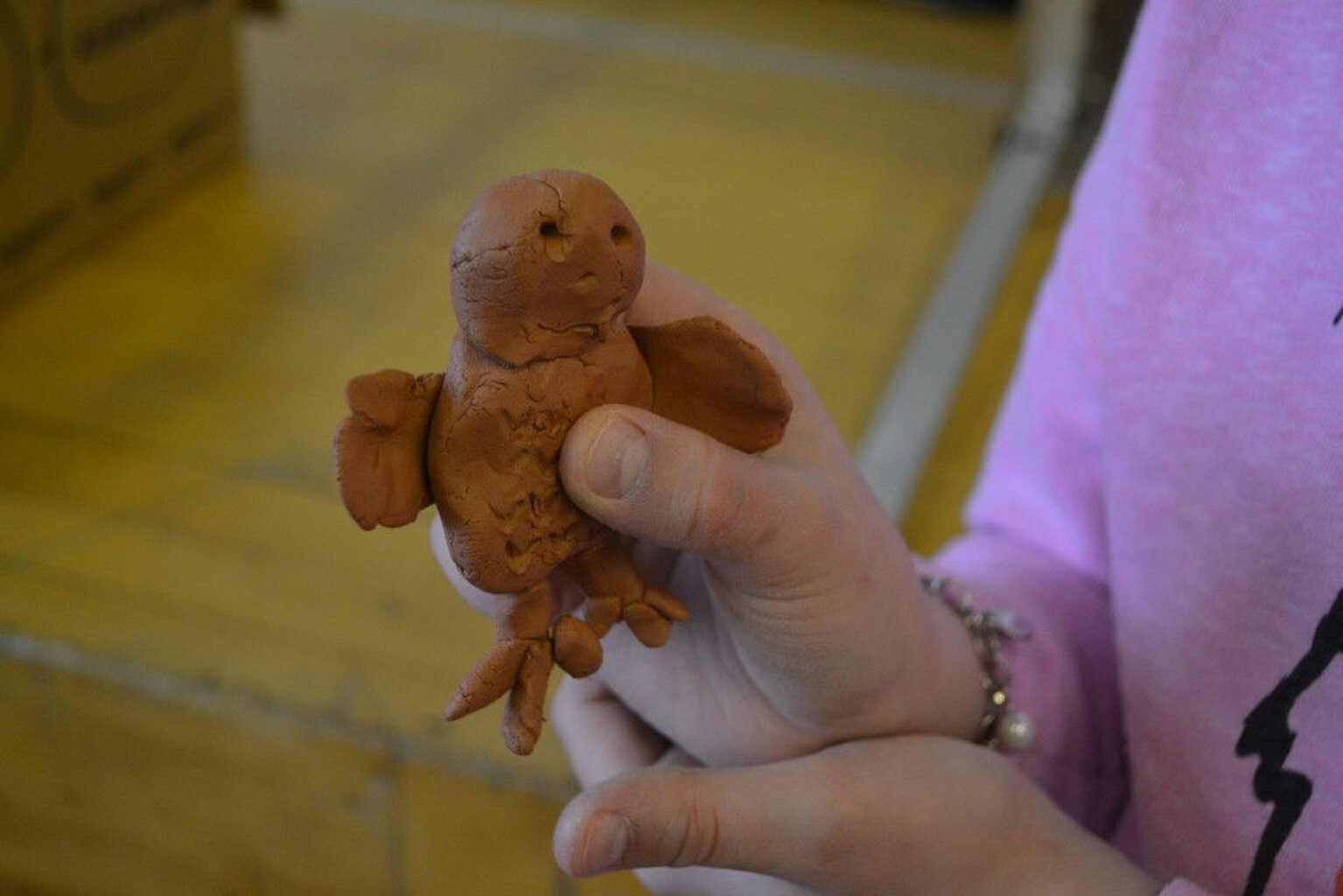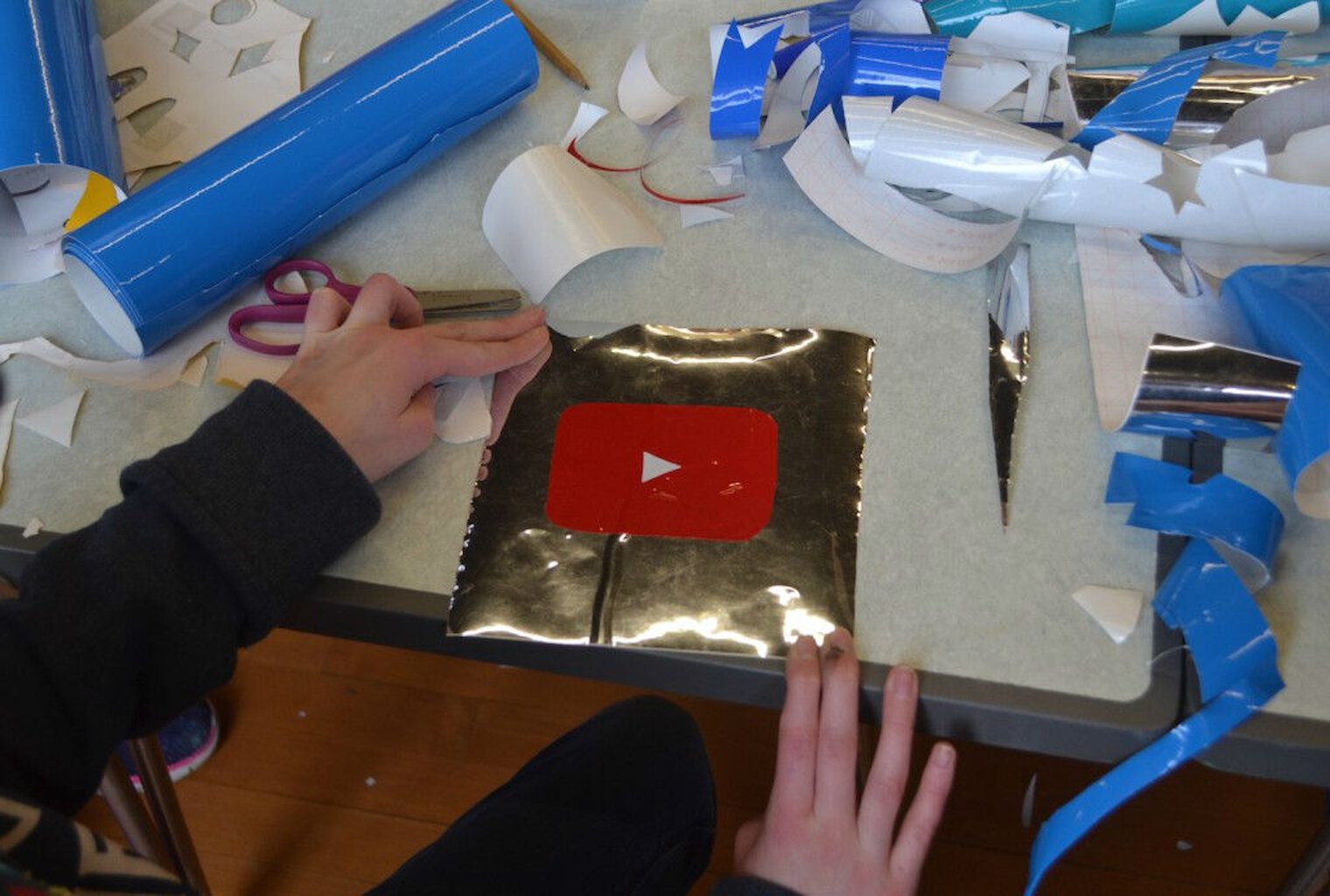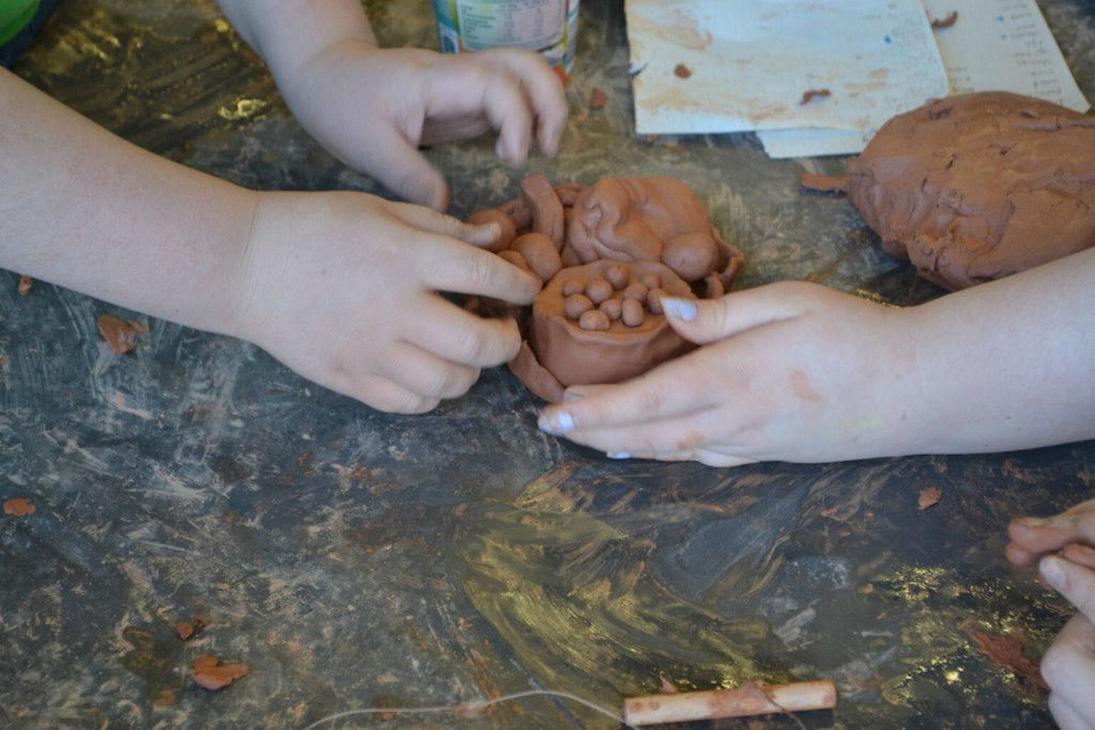 We have been to all the participating schools now for the first round of workshops. Sandwick finished off the last of the clay, and the canvas is full. The huge print is complete and we have a wall’s worth of vinyl collage. The next step begins over the next 10 days. We will take something someone has made and transform it into a different medium. All of these objects and images that have been made will be starting point for a new artwork.