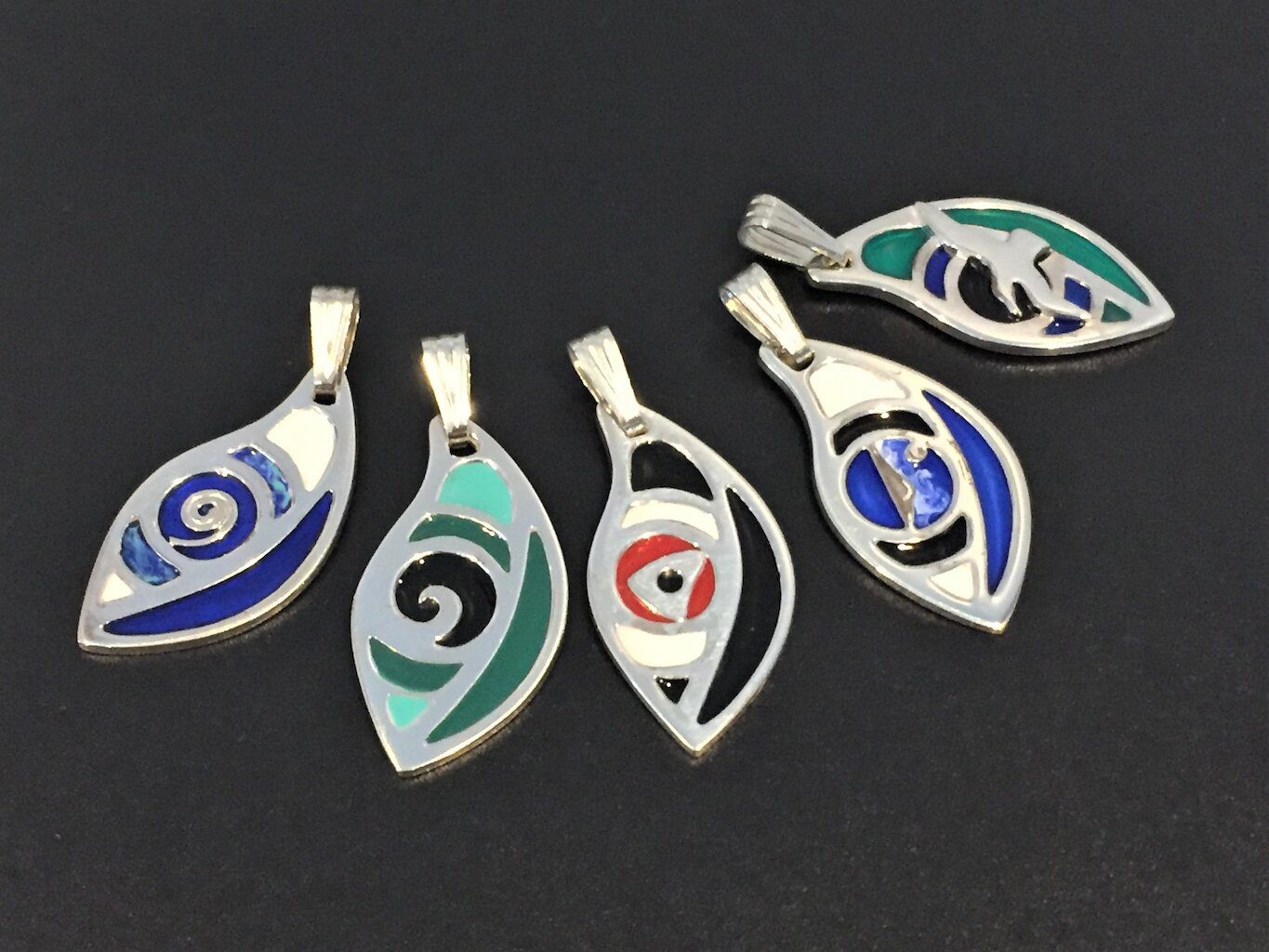 The eye motif is widely used in art and design, and jewellery design, e.g. “The Evil Eye” which is worn as a symbol of protection against bad luck and injury. This ancient symbol inspired the collection. I have incorporated elements of folklore and island life, eg “Tammie Norrie’s Eye Talisman”. Other pieces are a wider play on words or sayings to do with eyes, like “Eye of the Storm” or “Birds Eye View”.