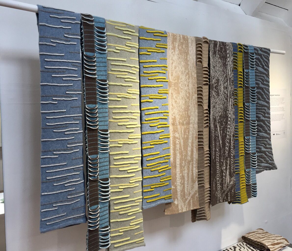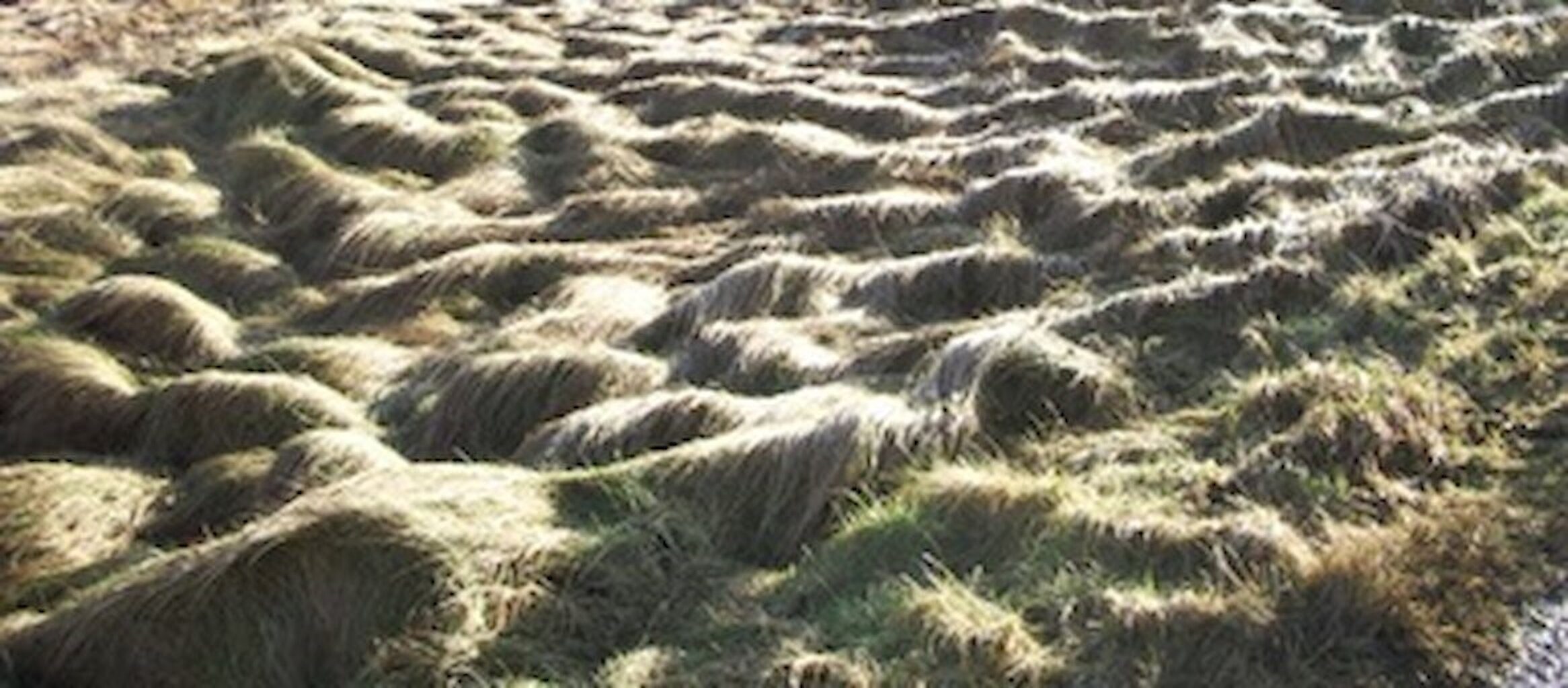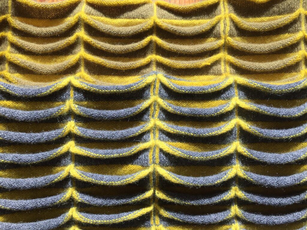 In some areas of Shetland where the grasses are left to grow naturally, they can reach quite a height. Inevitably the winds strengthen in the autumn and they are blown over. The way they fall over is not actually flat but in rounded “Tussocks”. I have tried to reproduce this in the Tussock Collection.