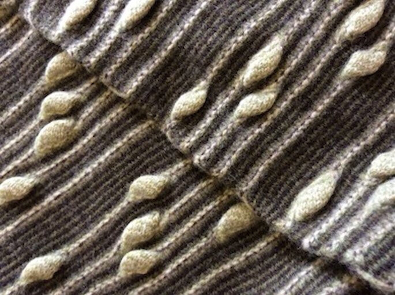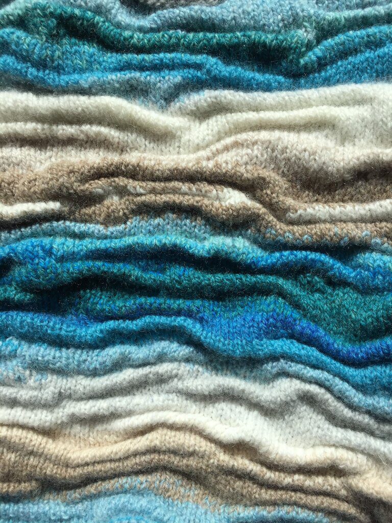 Everyone has seen the ripples left in the sand when the tide recedes. I saw this common phenomenon as a design challenge. Building surface texture into knitwear is of course a longstanding skill but modern techniques have enabled the enhancement of our capabilities.
