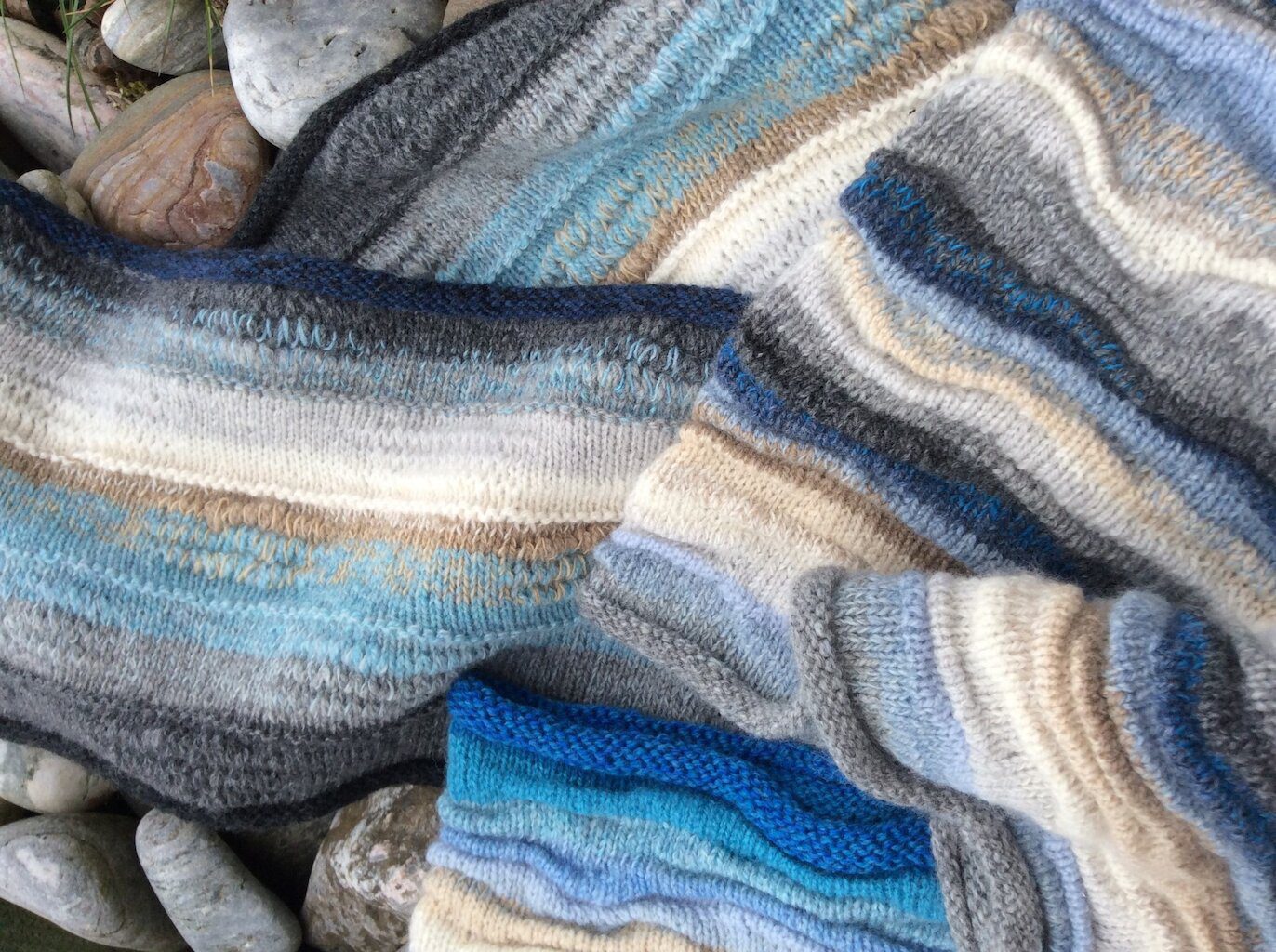 Margaret’s popular range of contemporary knitwear draws inspiration from the way her surroundings are influenced by the weather; the changing moods, colours and shapes of the sea; the flotsam and jetsam of objects washed up on the shore and the windblown grasses in the fields.