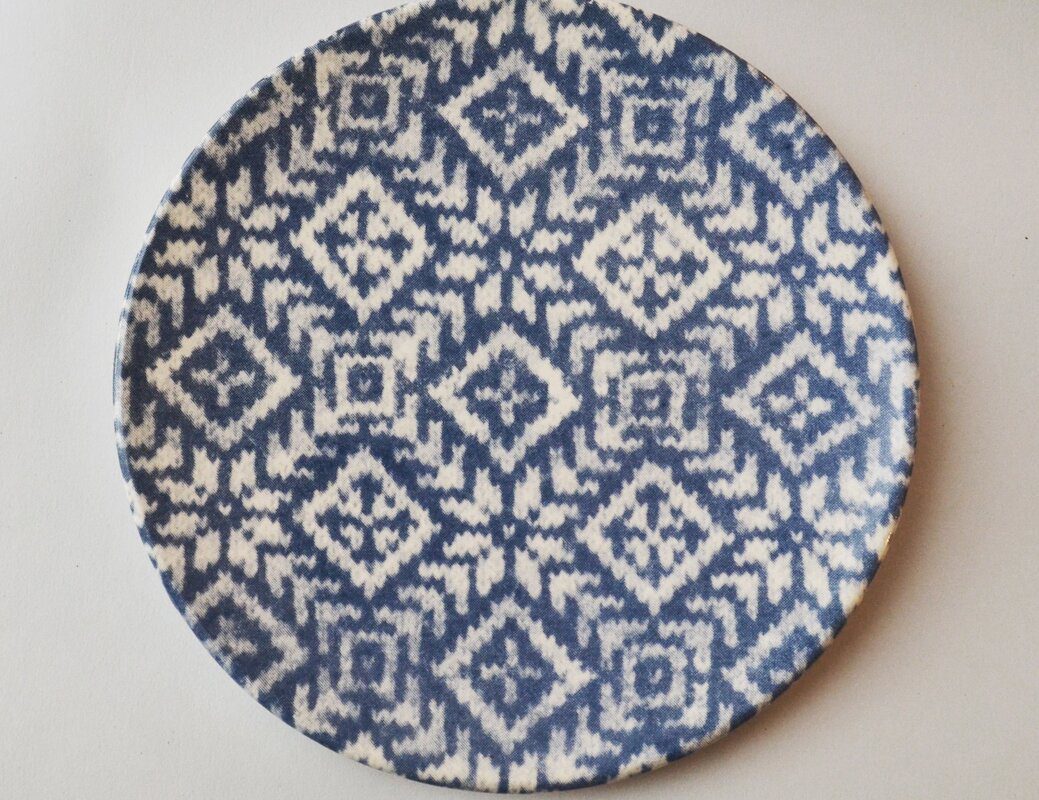It’s important to me to ‘locate’ my work, to make things that belong in some way to place, culture or environment. We are lucky enough to have a rich textile tradition and I wanted to find a way of adapting knitted patterns to ceramic forms. This is not entirely straightforward – the patterns have developed over many years to follow the forms of bodies and garments and so don’t always adapt comfortably to tableware shapes. The challenge (and the fascination) is in translating patterns into a ceramic ‘language’ – finding patterns that can be modified to fit happily into plate shapes, for example, and to work well using ceramic colours such as the classic blue and white combination.