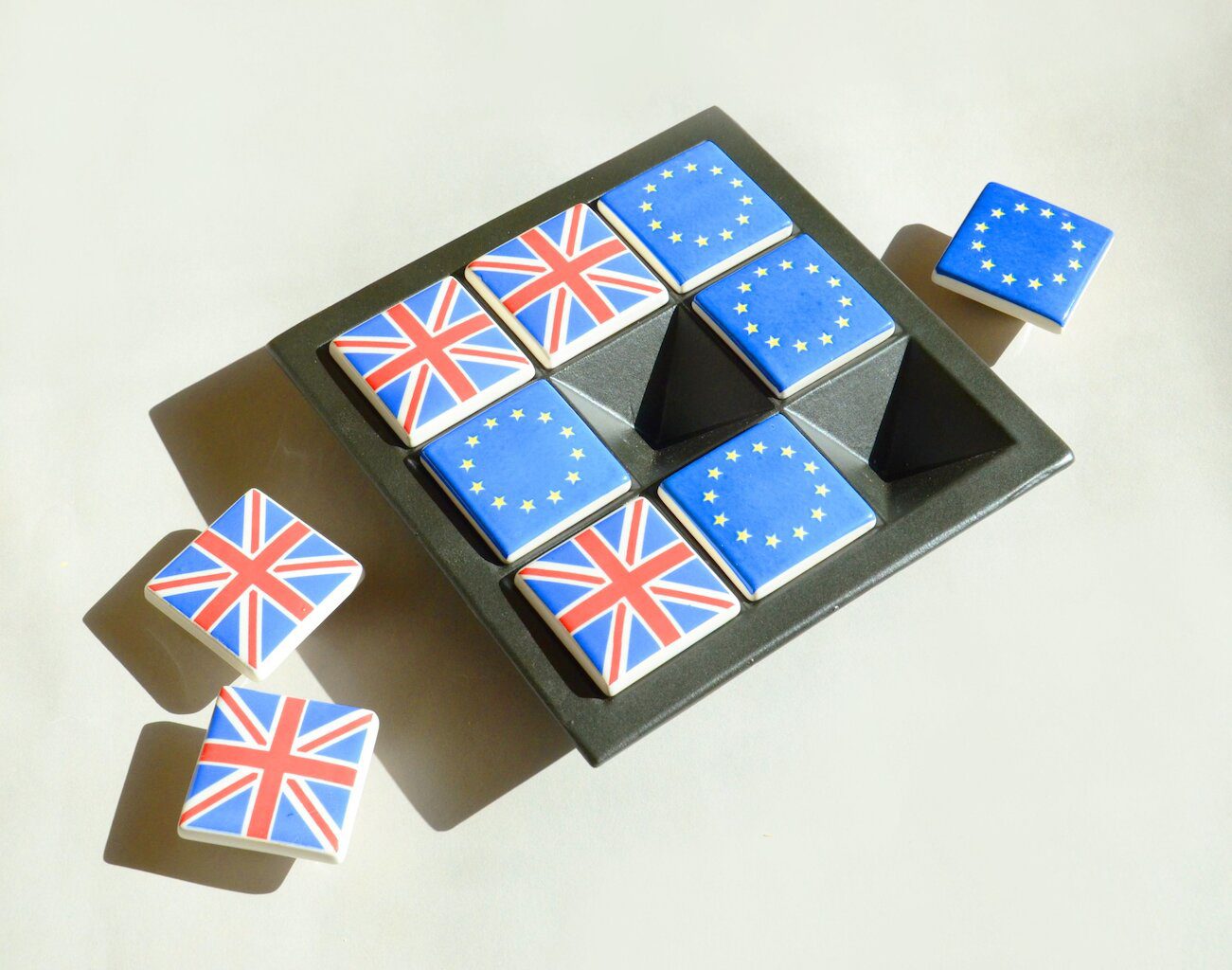 … is a difficult game to win. The shapes of the flags resemble ‘X’s and ‘O’s and the opportunity to use this was too good to miss. It’s a variation on a piece I’ve been making occasionally over the last few years and it seemed highly appropriate for present circumstances.