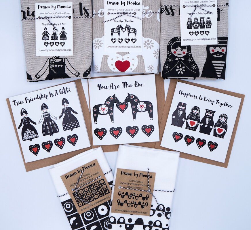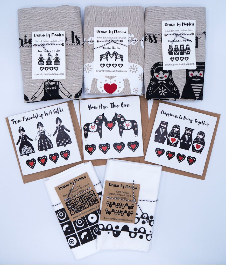 As much as possible I try to produce products that I have completed entirely myself. From generating the initial artwork, applying the imagery to the products. To designing and producing my own branded fabric labels, packaging tags to any other any other additional branding printed information.