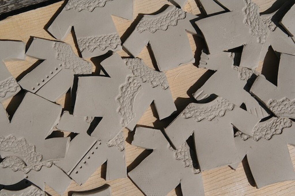 These peerie jumpers are waiting to be glazed and then will become brooches.