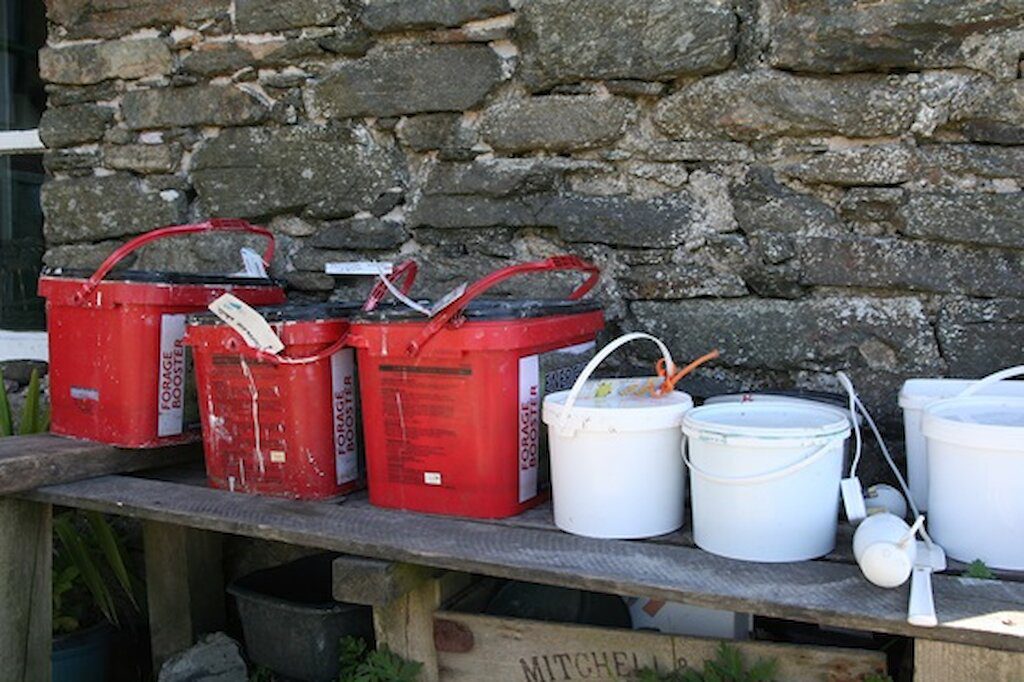Where would we be without sheep lick buckets! Each bucket is labelled several times as many wet glazes look very similar and each is referenced to a recipe. Some colours are more challenging to make than others, and some give surprises!