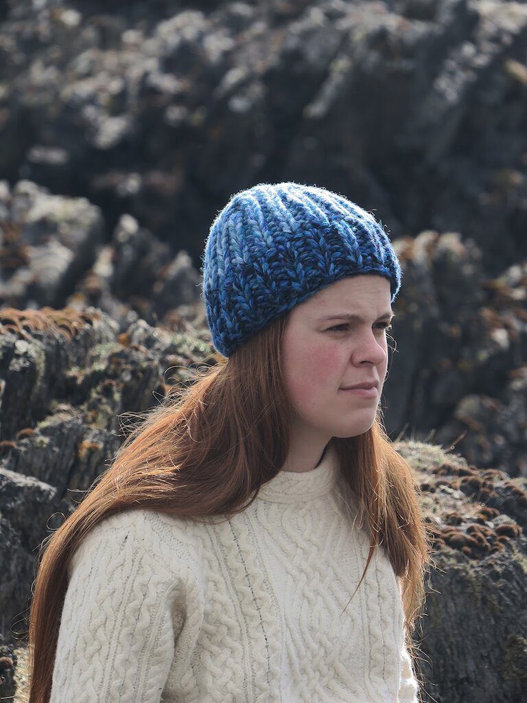 I’m a French textile designer who moved to Fair Isle three years ago. I have been designing and producing knitwear here for over two years. Fair Isle is a very creative place – don’t take my word for it – come and visit! I think it’s creative because islanders have to be ingenious and inventive. There is no DIY shop, there is no art shop, you can’t go and buy what you need, so instead you re-use or create from scratch. You don’t have the temptation to go the easy way, you have to make do with what is available to you. You find it in many fields: art, music, crofting, cooking, etc. As a visitor, the first time I came to Fair Isle, it was really a revelation to me that having no access to some things can actually be a blessing.