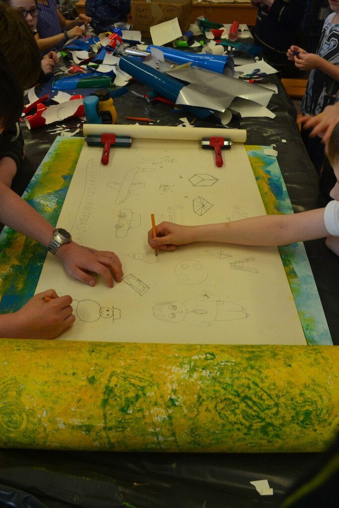 We were in Whalsay School last Wednesday working with P6+7 and S1,2 and 3 making artwork for The Art World.