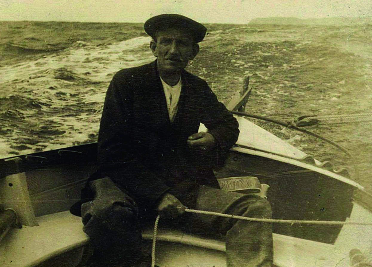 Sammy Leask, Susan's Grandfather, at the helm of the Racer – Lapwing, c1930