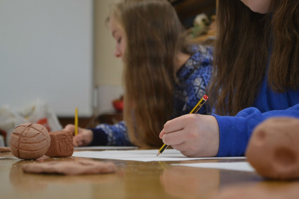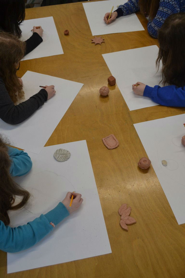 S3 are making SCULPTURES into PAINTINGS/DRAWINGS (3d to 2d). They are working in Art with Mrs Hunter.