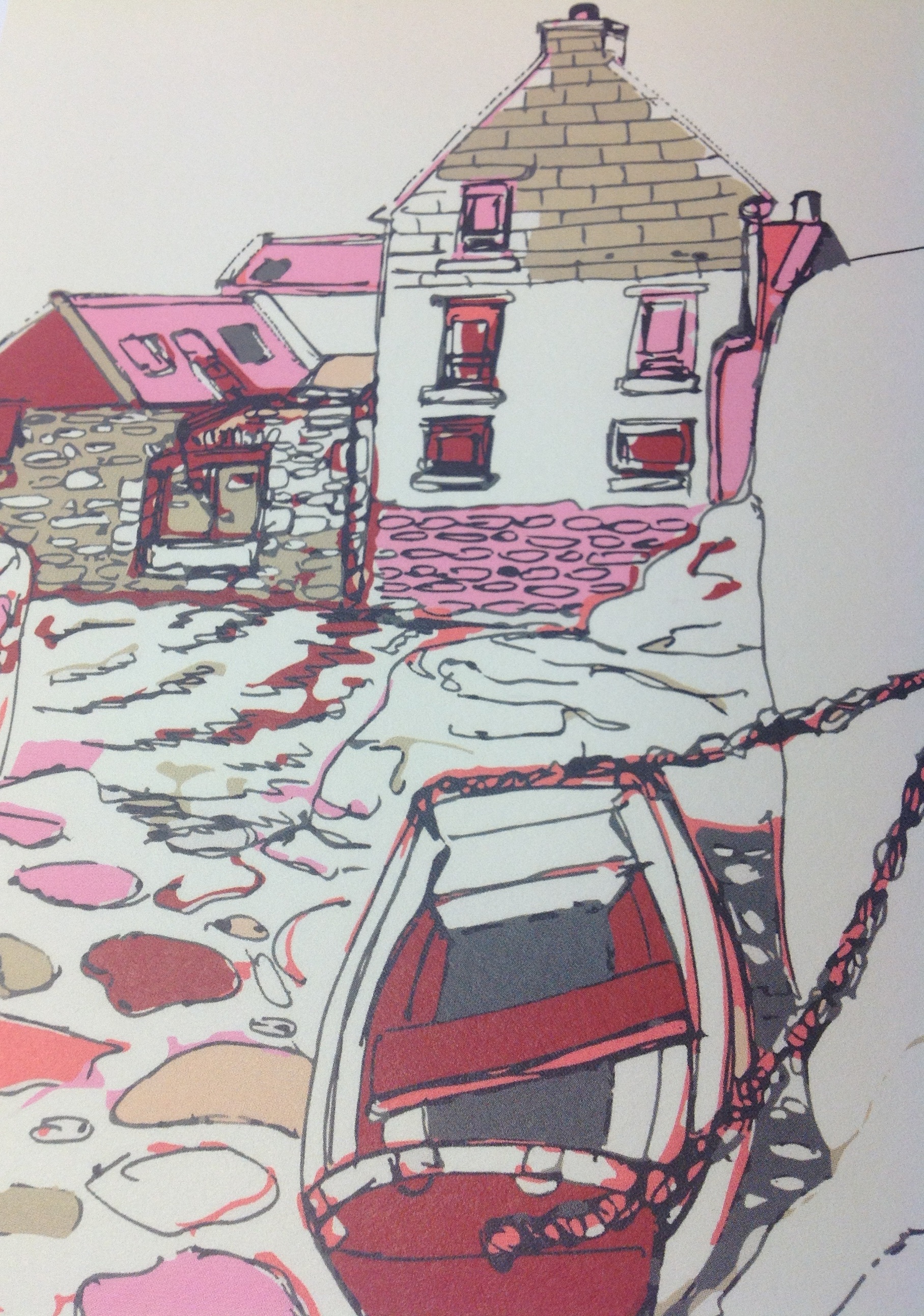 Monica Pothecary has been busy working on her own range of printed designs since graduating from the Shetland College with a BA in contemporary textiles last year. Her collection of cards is inspired by a collection of photographs taken over a number of years while riding her scooter around Shetland. She conveys a unique view of tradition with a fresh colour palette in a contemporary style combining hand drawing and digital techniques.Card by Monica Pothecary