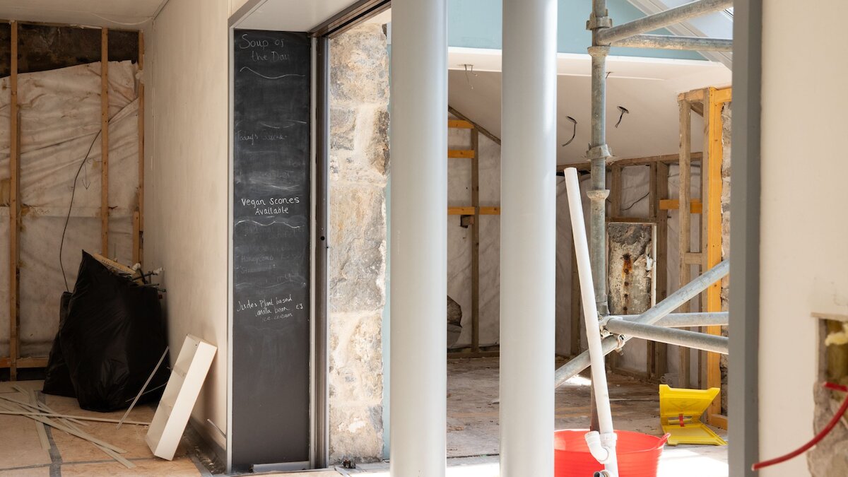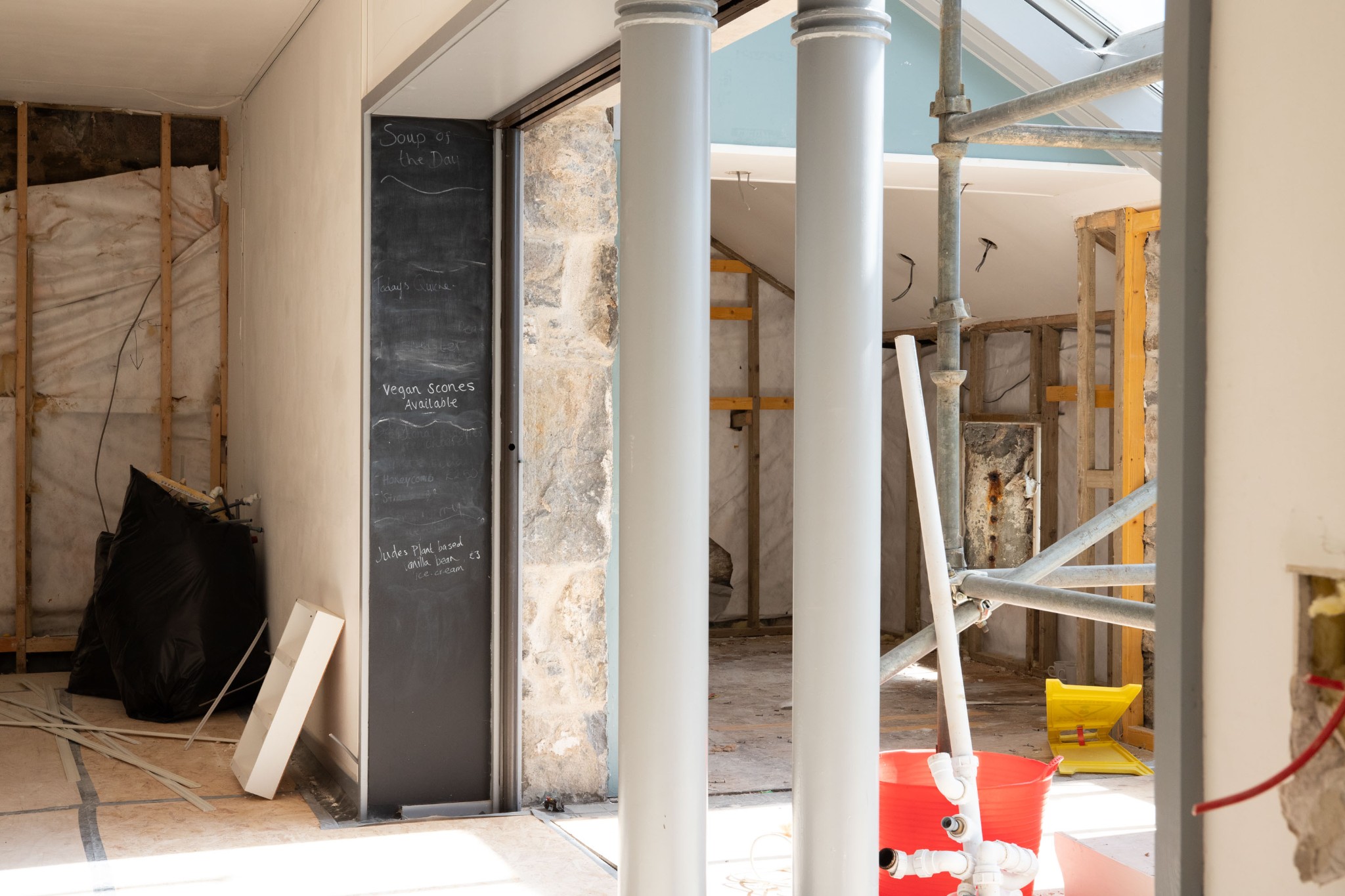 Whilst removing the plasterboard in the shop, the builders also came across some writing on the walls left behind by previous contractors working on the site - including one disheartened message of there being a lack of trouts in the burn. Similarly, downstairs in the cafe, it was amusing to see that the menu board still had "vegan scones available" and "Jude's plant-based vanilla bean ice cream" for £3.