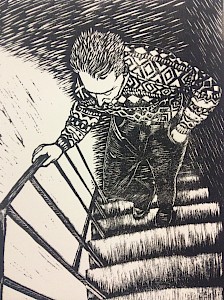 Unearthed includes a suite of six lino prints that each depict the moment when a person showed their oil era skran to the artist. In comparison to putting pencil to paper, lino prints offer a completely different way to develop a drawing. A lino image is primarily created by juxtaposing areas of ink with areas where plain paper is exposed. Moreover, because the drawing is made by cutting into the lino and then printing it onto paper, more than one drawing can be made. This workshop involves the use of sharp hand tools and inks: participants are advised to wear covered shoes, and an old shirt to prevent their clothing from staining.