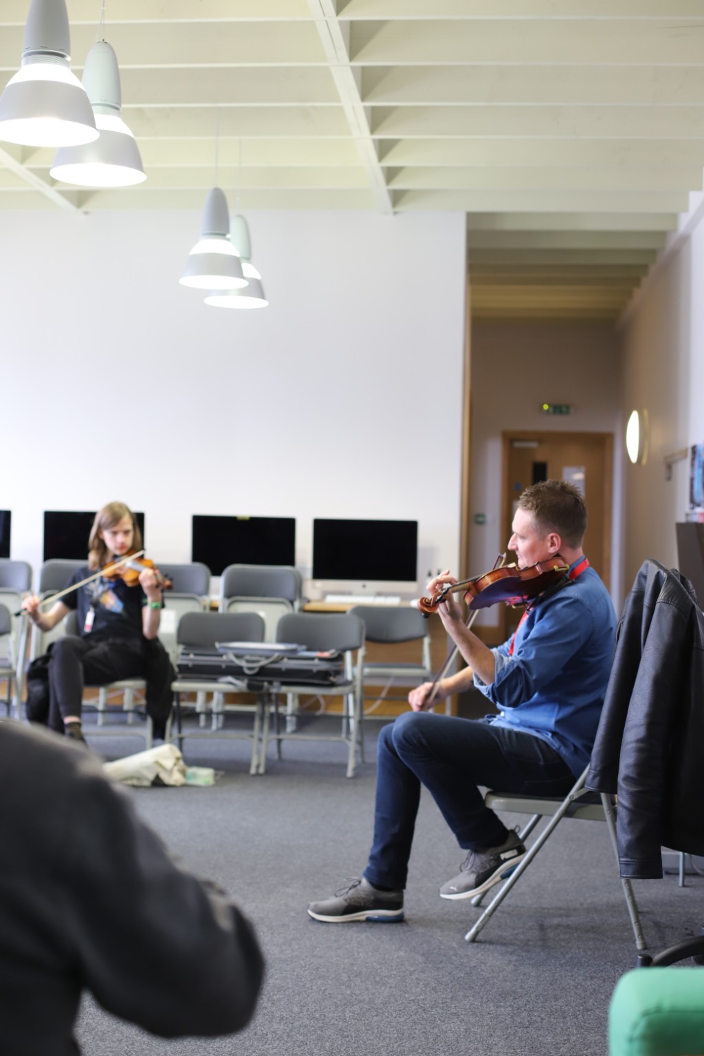 Classes for Folk Frenzy pass holders were hosted between Mareel and the Shetland Museum and Archives, both feeling especially lively with the sound of learning all week as our Folk Frenzy-ers worked hard to develop their skills and techniques, in preparation for the final concert on Friday night where they would perform along with their tutors. Mareel's cafe bar was particularly lively in the evenings as musicians gathered together for sessions.