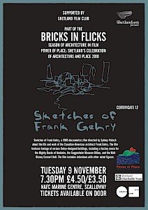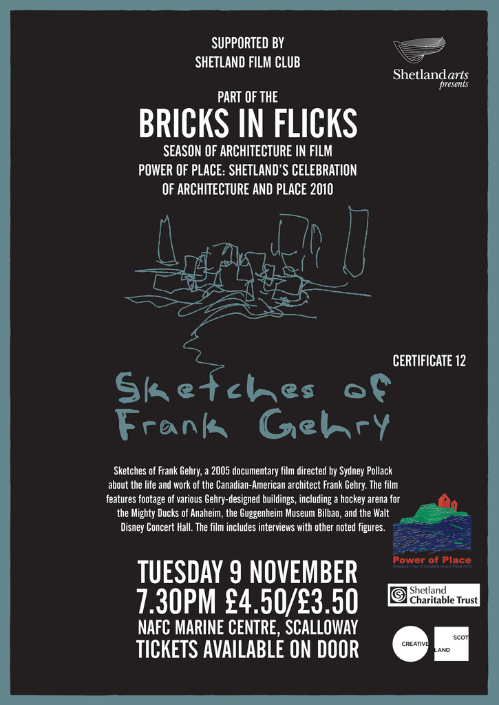 On Tuesday 9th November the Shetland Film Club, supported by Shetland Arts, will be showing Sketches of Frank Gehry at the NAFC Marine Centre at 7:30 pm. Architect Frank Gehry and filmmaker Sydney Pollack are two of the best-known names in their respective fields. In this documentary, director Pollack turns his camera on to his long-time friend Gehry, one of the world’s most celebrated architects and creator of some of the greatest buildings of the modern era, including the Guggenheim Museum in Bilbao and the Walt Disney Concert Hall in Los Angeles. Pollack uncovers Gehry’s creative process, from his early abstract sketches and three dimensional models to the awe-inspiring finished structures. Shot in an informal, highly accessible style, the film is a fascinating portrait of the man whose masterpieces have transformed a conventional science into an extraordinary art form. The film carries a ‘12A’ certificate.