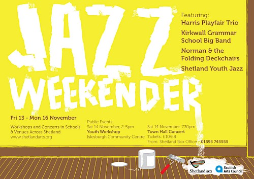 The Jazz Weekender provides an opportunity for young jazz musicians from Orkney and Shetland to get together, learn new skills and have some fun. Jazz is brilliant artform through which young players can express themselves, improvise freely and develop their musicianship in a variety of ways. The Saturday evening concert will give Shetland audiences a chance to hear some of our finest young musicians perform alongside performers as accomplished as the Harris Playfair Trio.