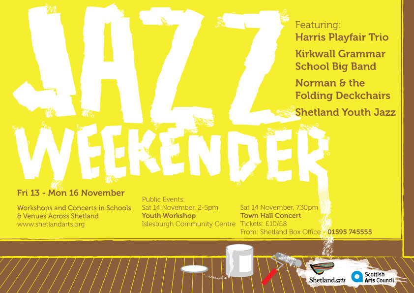 The weekend starts on Friday 13th November with the Kirkwall Grammar School Big Band performing to pupils at Bells Brae and Sound primary schools, and Harris Playfair hosting master-classes at Sandwick Junior High and Anderson High School.