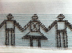Jen Deschenes is a textile designer specialising in hand screen-printing and embroidery. While collections of her work have featured at Bonhoga in past years Shetland Arts is proud to be presenting Jen’s solo exhibition Common Thread at the Gallery from this Saturday, 13 September, until 26 October.Jen’s work is intricate and exquisite with a strong narrative at its core, drawing on Shetland traditions and her own personal histories. Born in Shetland and raised in Whalsay Jen’s Shetland roots are at the heart of her work.