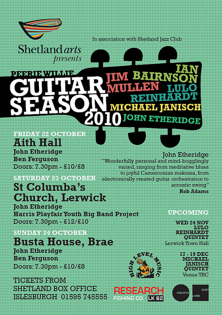 - Friday 22 October, Aith Hall – £10/8 – John Etheridge & Ben Ferguson