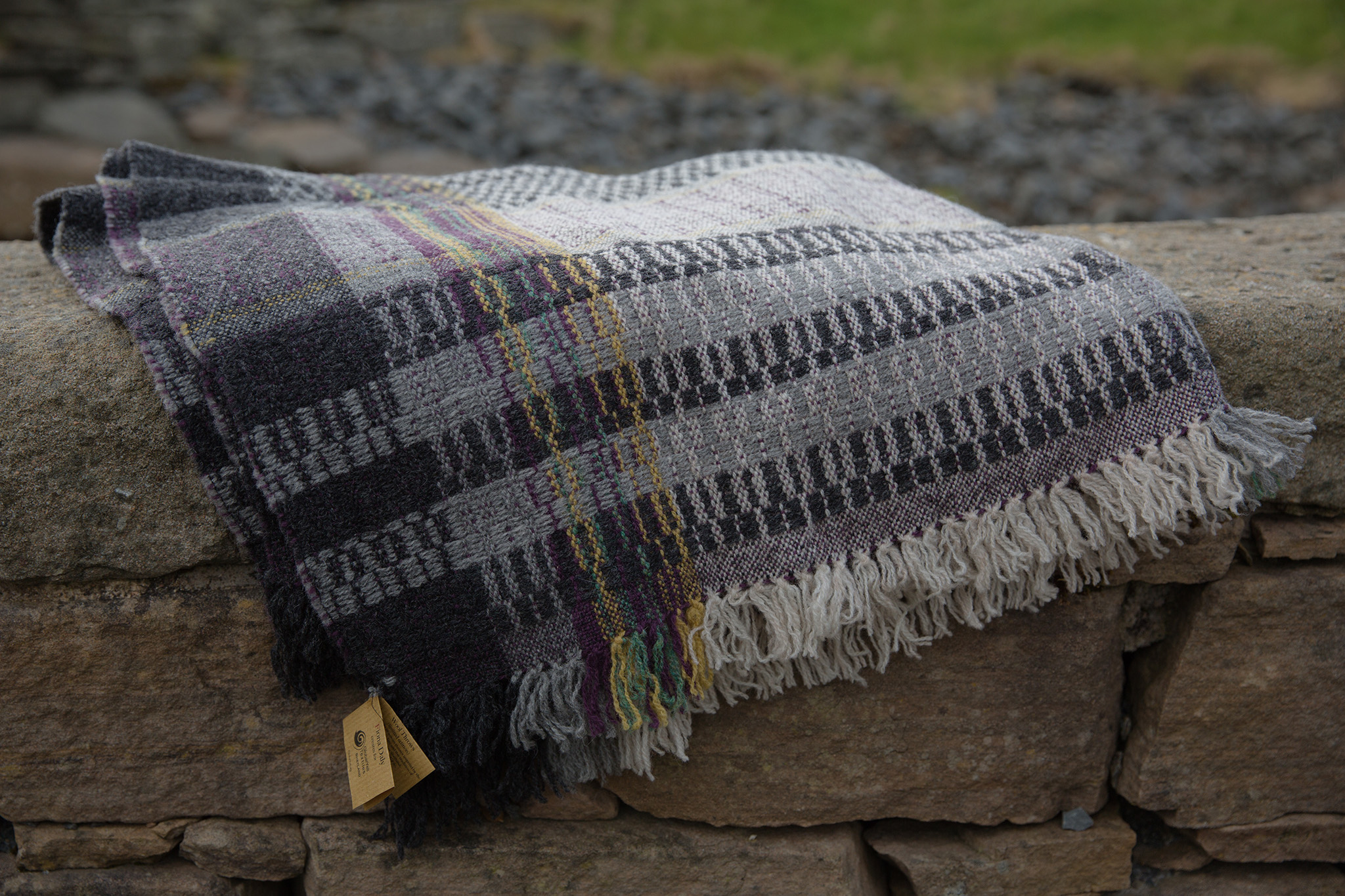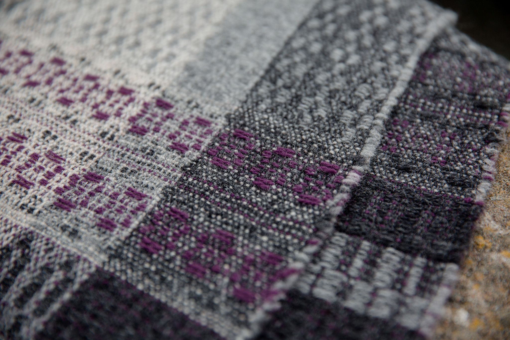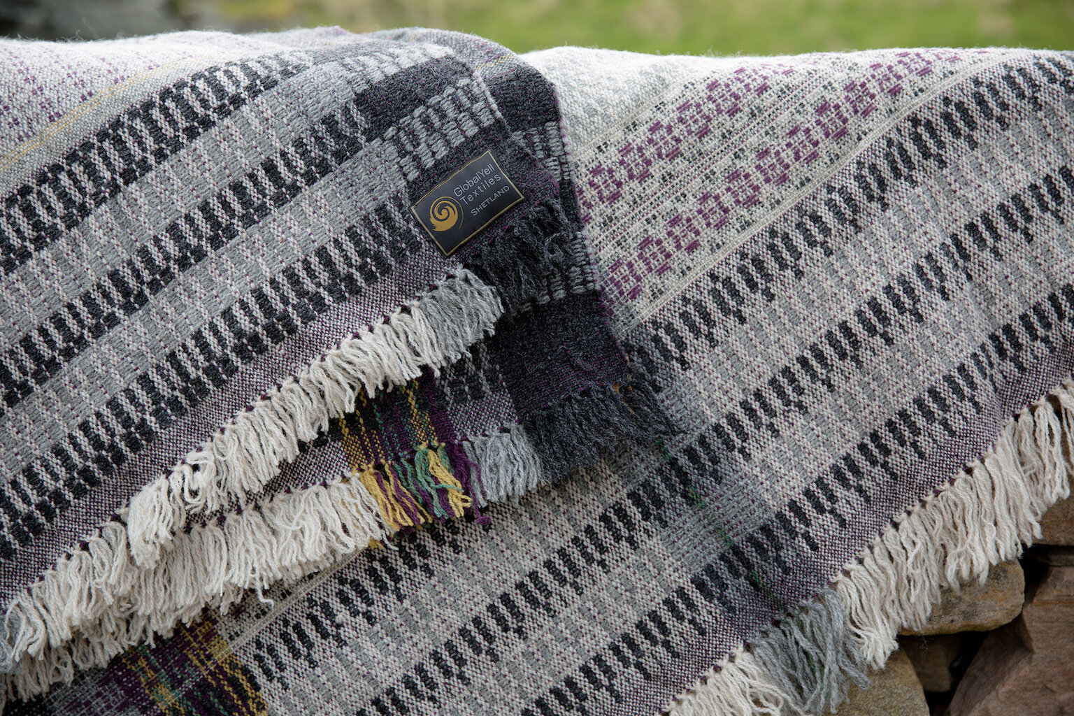 Bonhoga Gallery is delighted to showcase the beautiful woven textiles of designer Fiona Daly, an Irish weaver who recently spent two months in residency at GlobalYell creating a limited edition set of woven throws inspired by the patterns of Fair Isle knitting and the tradition of taatit rugs. Each throw is woven in 100% Shetland wool at the GlobalYell workshop.