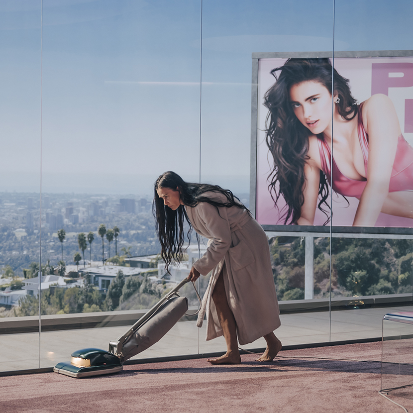 Fading celebrity, Elisabeth Sparkle (Moore) faces a devastating blow on her 50th birthday when she's axed by her misogynist boss (Dennis Quaid). She's drawn to the opportunity presented by a mysterious new drug that will turn her into a "younger, more beautiful" version of herself. So enters the eerily perfect Sue (Margaret Qualley). The only rule? Her time is split: one week in one body, the next in the other. No exceptions. A perfect balance. What could go wrong?