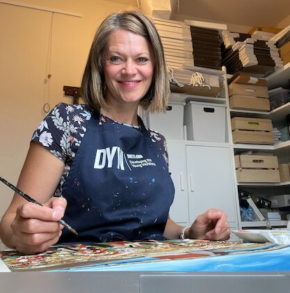 I have been inspired by arts and crafts all my life. I started taking my practice seriously about 8 years ago. From there I have built a small art business, while balancing a full time job at Shetland College. I predominately focus on producing original acrylic paintings and limited edition prints. More recently I have developed my brand further to include a range of tea towels, notebooks, ceramics and a fun range of keyrings and brooches.
