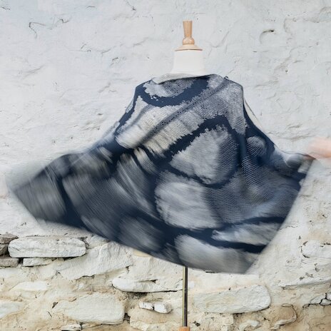 Niela loves making Marlet wraps and the way the colours mingle on the piece when it is worn. She loves the shape and the influences. It was the first garment Niela made in the Marlet collection and from there she developed the process she now uses all the time when developing a collection.