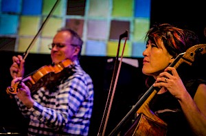 The ensemble plays a range of music from tango through jazz and rock to contemporary classical, taking in quite a lot besides. It consists of string quartet, bass, piano, percussion and sometimes vocals - and more as required.
