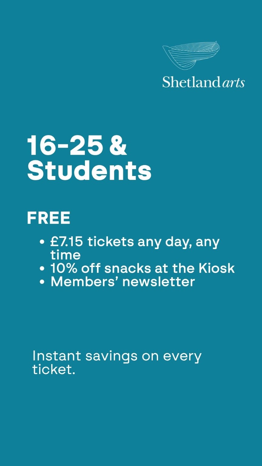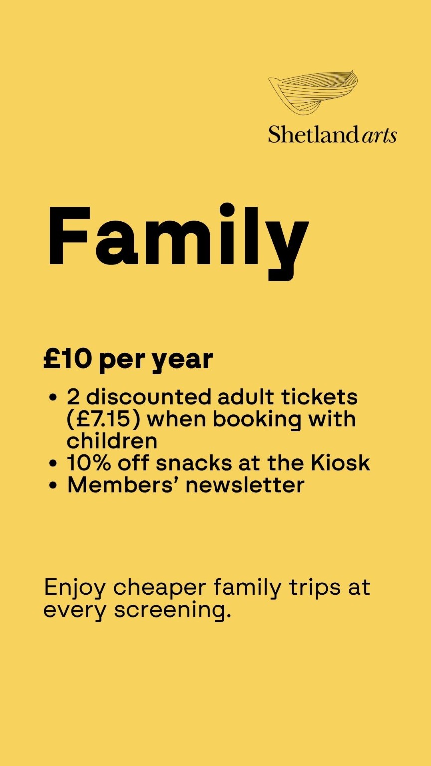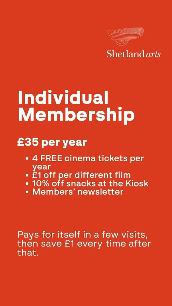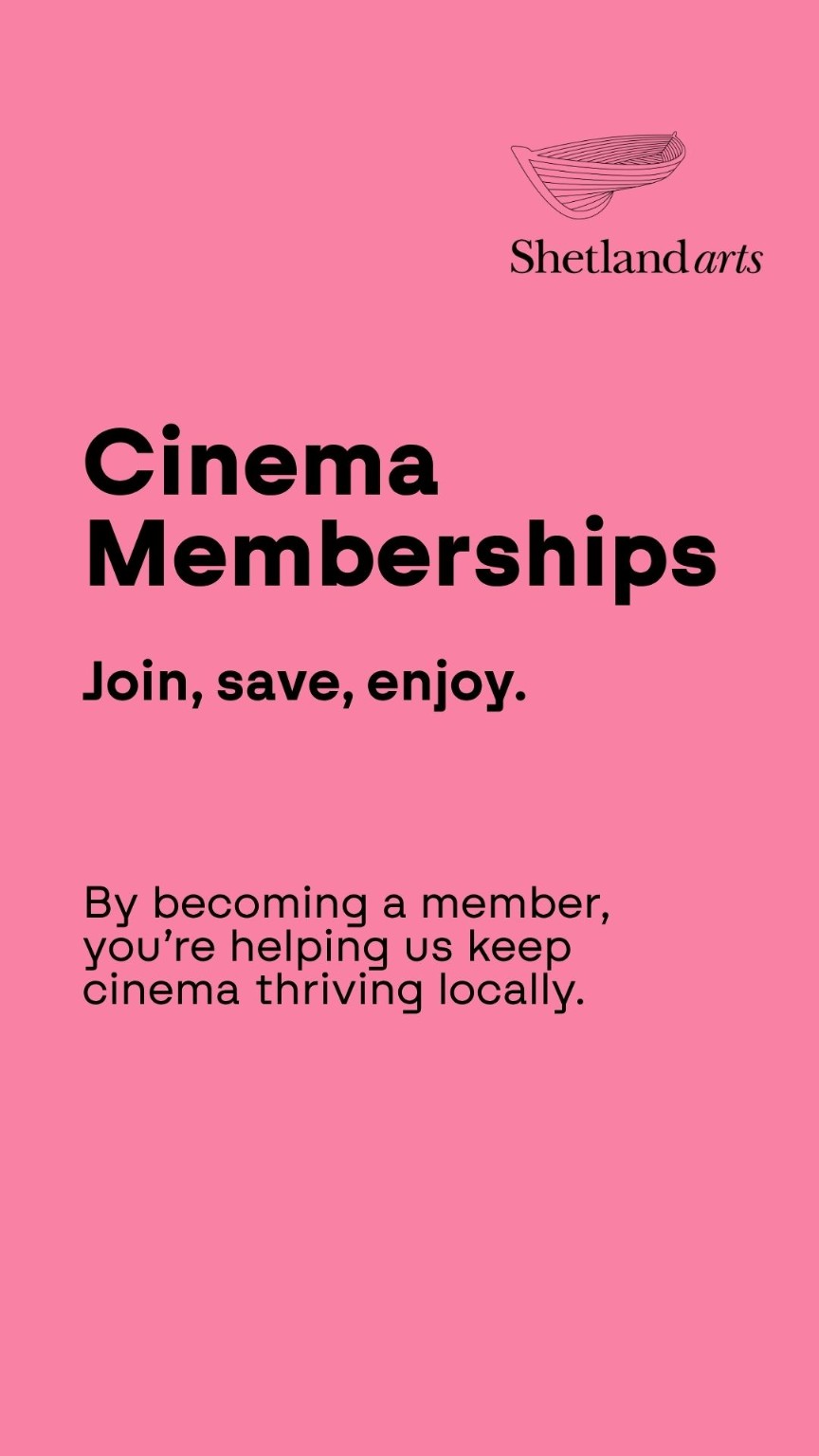 These changes will help ensure the long-term sustainability of the cinema, allowing Shetland Arts to continue offering our current programme of screenings. We’re also introducing new memberships, giving audiences more ways to save when visiting the cinema.