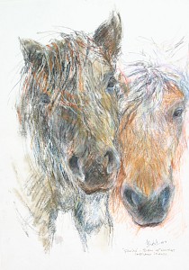 Artist and retired art teacher Peter Biehl is an originally from Copenhagen and now lives in Shetland. He trained at the Royal Academy of Fine Art in Copenhagen and spent most of his working life in Denmark. ‘Shetland with its perpetual poetical nonchalance has been an inevitable challenge to my art since I paid the remote islands a visit over fifteen years ago,’ said the artist who has based his exhibition pieces on his studies of Shetland ponies. ‘Past and present converge in my mind and challenge the borders of my fragile and material world.’