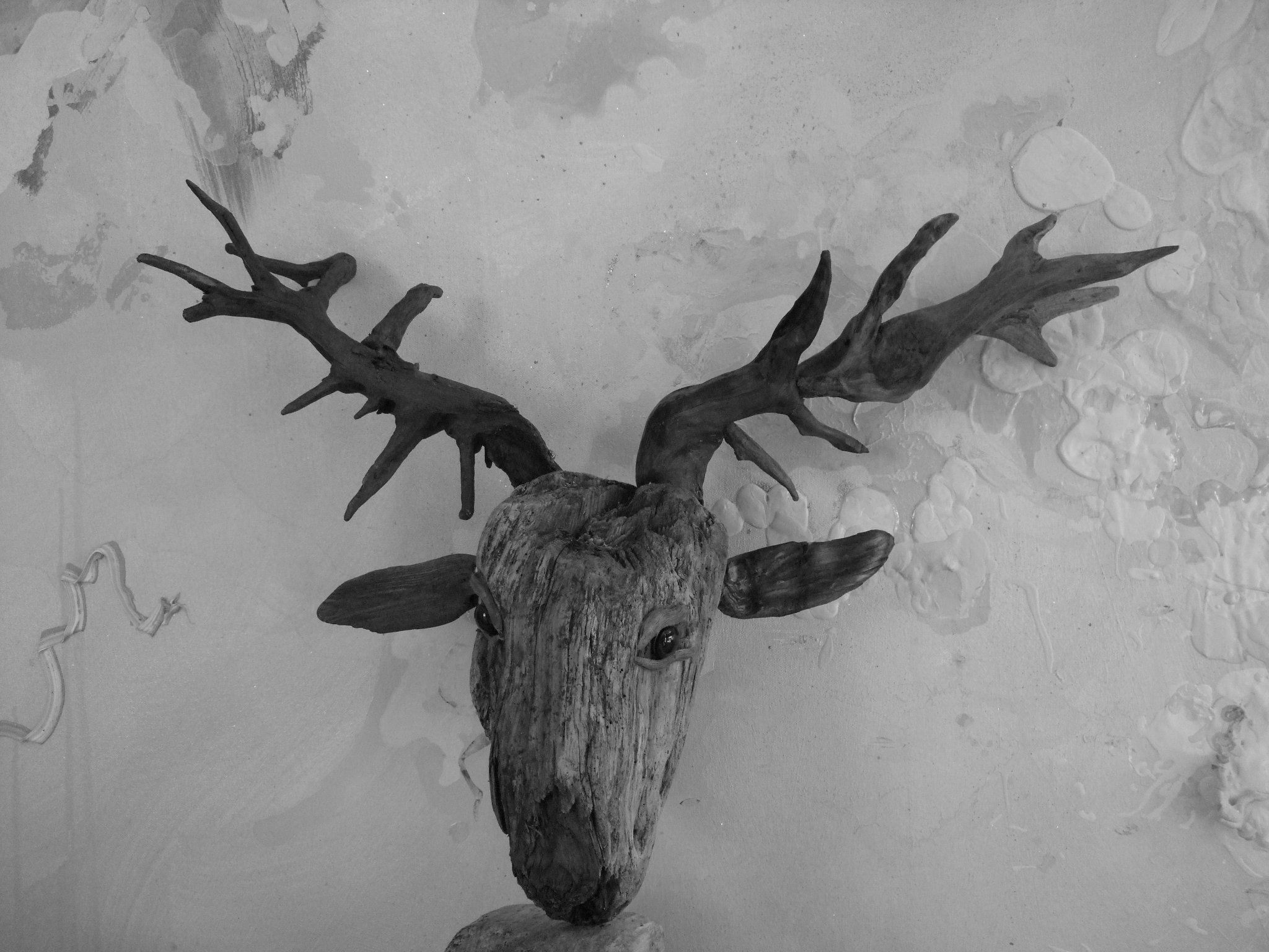 Growing up on a croft in rural Shetland Ruth Fisher frequently crafted playthings from the natural and unwanted materials she found. She has continued this into adult life. ‘My sculptures are mostly carved and crafted from wood and I embellish and detail using rusted metal, worn leather, bones and skins. My tools may have become a little more sophisticated than those of my childhood (except for my old pocket knife) but the joy of searching for and creating something unique from discarded objects remains the same.’