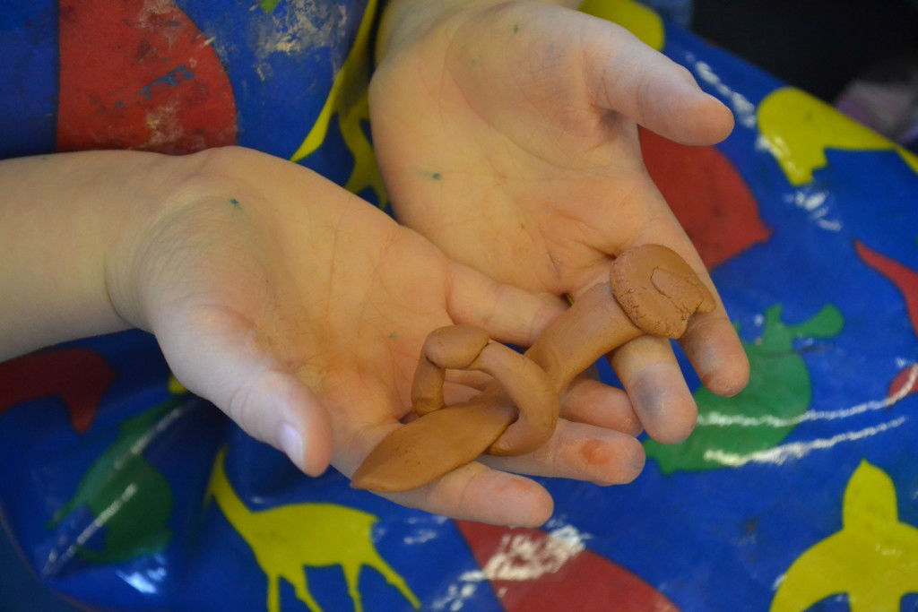 We have been to all the participating schools now for the first round of workshops. Sandwick finished off the last of the clay, and the canvas is full. The huge print is complete and we have a wall’s worth of vinyl collage. The next step begins over the next 10 days. We will take something someone has made and transform it into a different medium. All of these objects and images that have been made will be starting point for a new artwork.