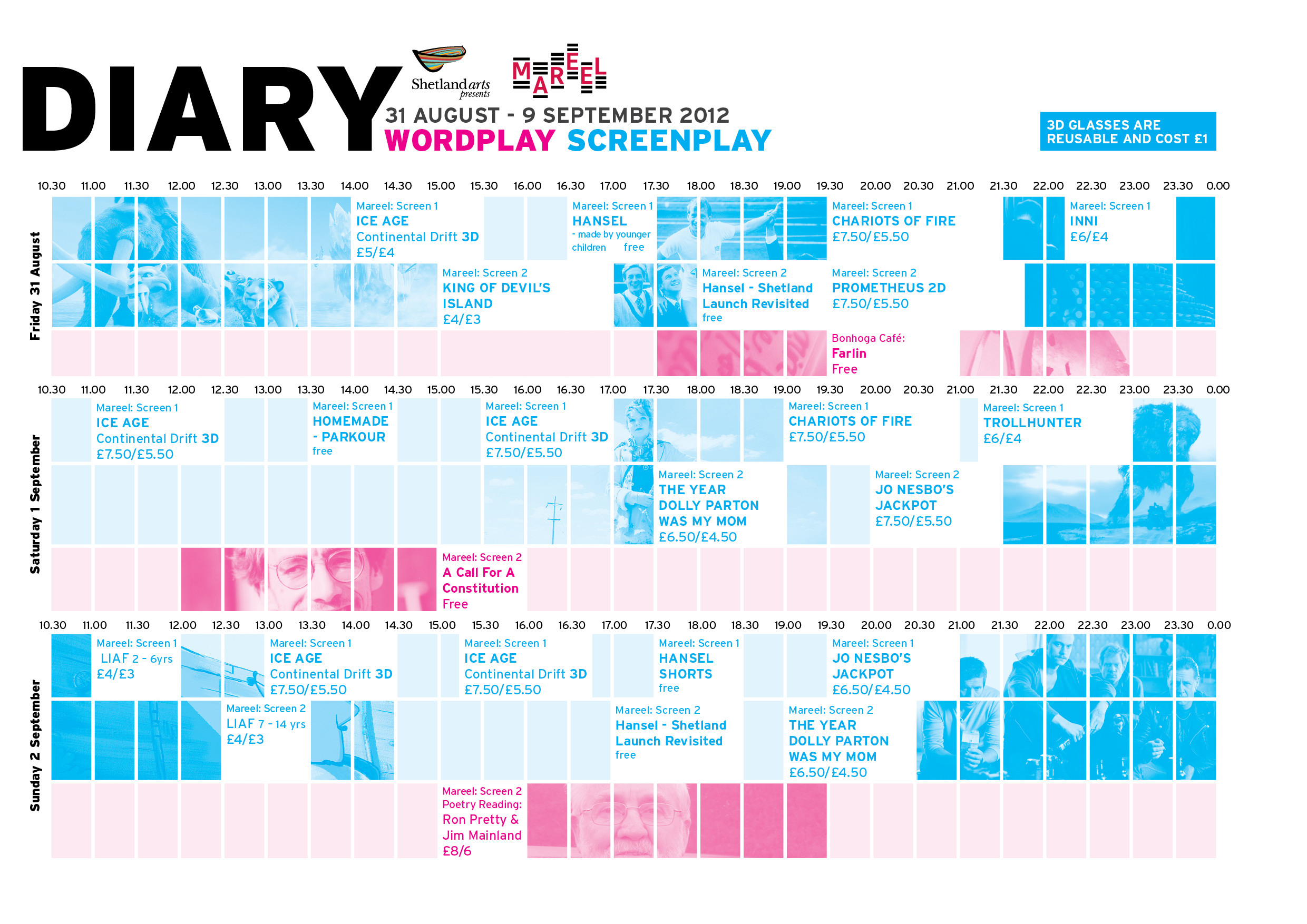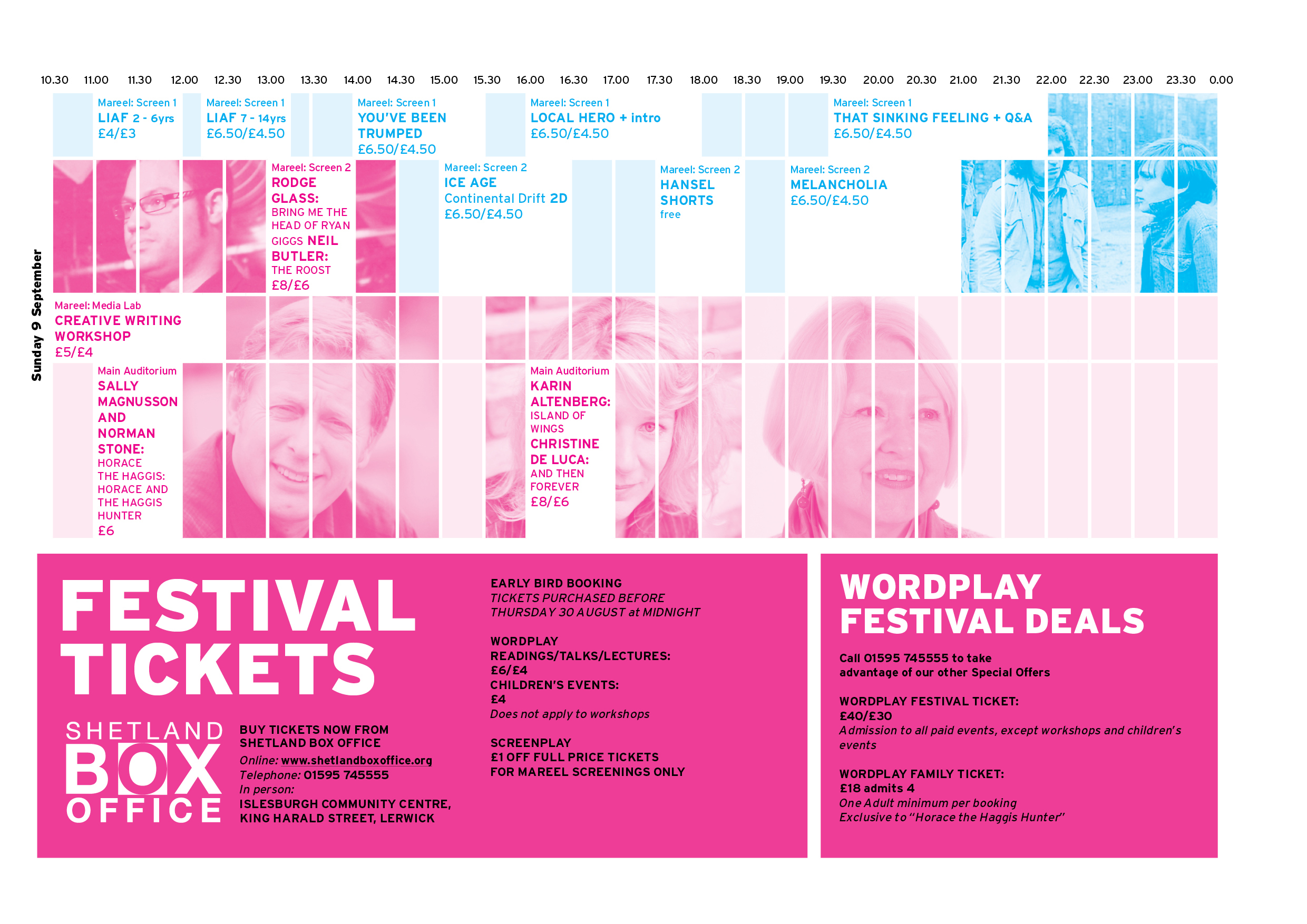 Screenplay and Wordplay events now on-sale! Tickets can be booked via Shetland Box Office, Islesburgh Community Centre, 01595 745 555, www.shetlandboxoffice.org