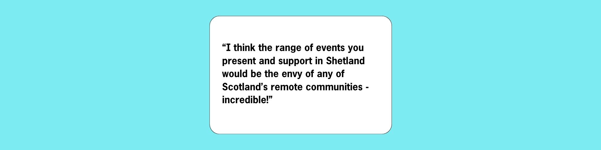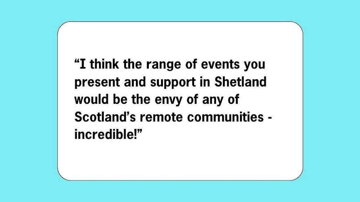 And thank you to everyone who supports Shetland Arts by coming to the cinema, attending events, signing up for workshops, taking courses, enjoying a coffee, shopping for gifts and liking & sharing our posts on social media.