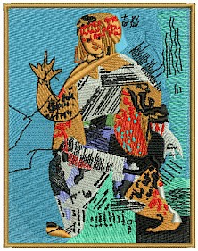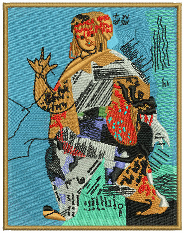Heather is an artist based in Shetland and the pieces she has on display in the Lower Gallery café area are exquisite embroidered patches, which explore where modern woman fits into culture and where she herself can be represented within the stereotypes of modern society. The artist strives to “shift the dynamics of accepted female representation by making new cultural symbols”. Heather’s embroidered patches are created from sketchbook images in response to everyday experiences. They are personal and confessional images, transferred to material and then industrially manufactured, thus reversing the traditional link of women and craft.